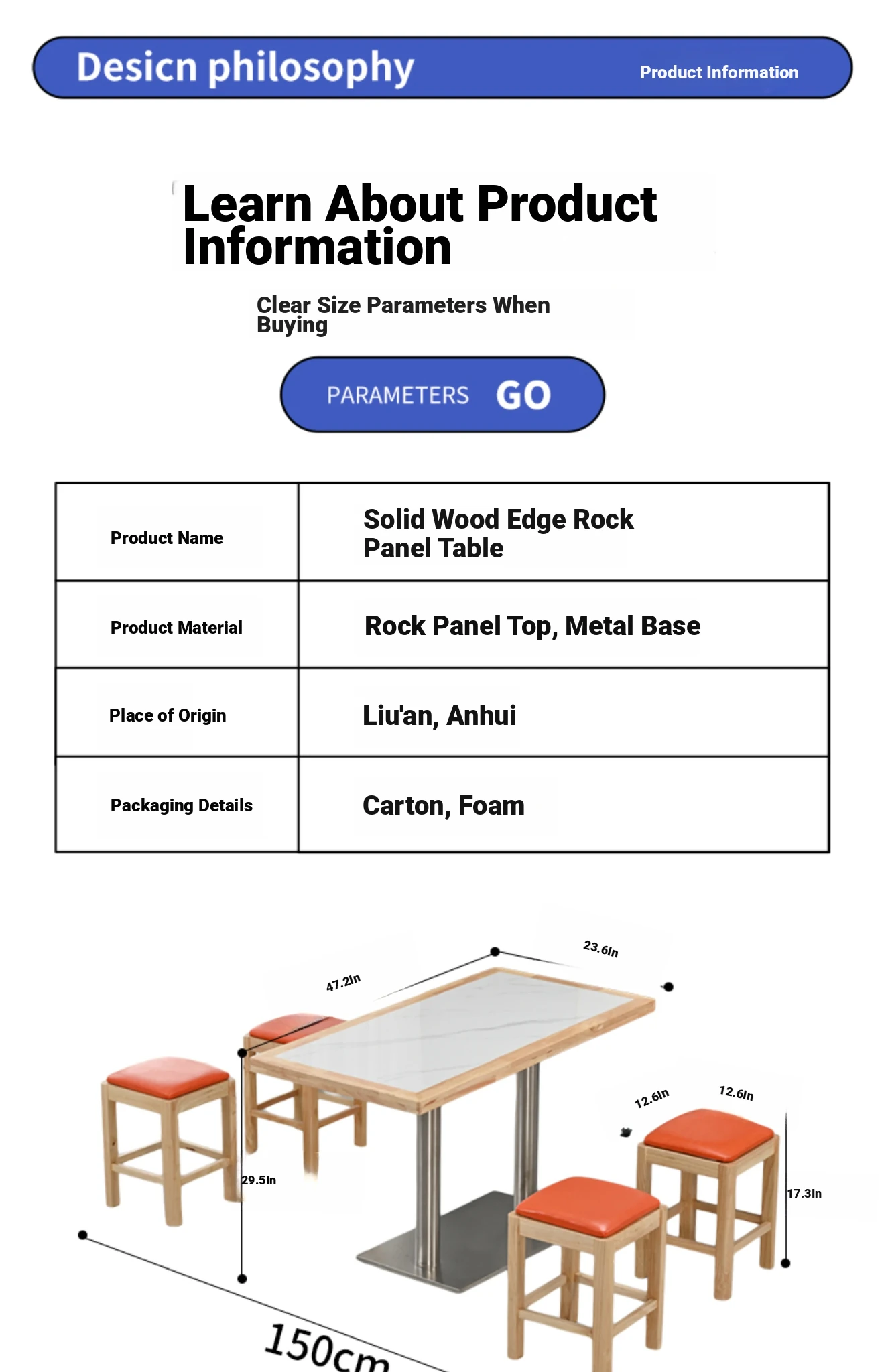 120*60 four-person Italian gray composite bottom table orange bench