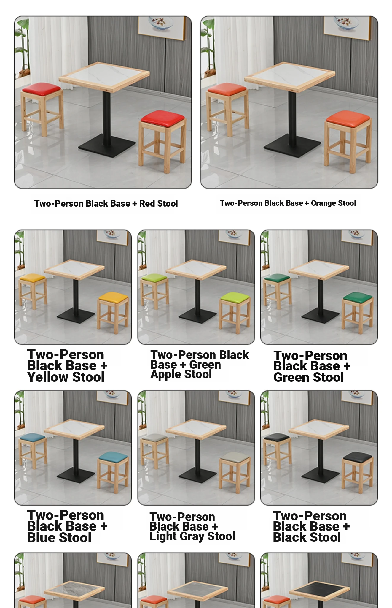 70*70 double snow white composite table bottom table orange bench