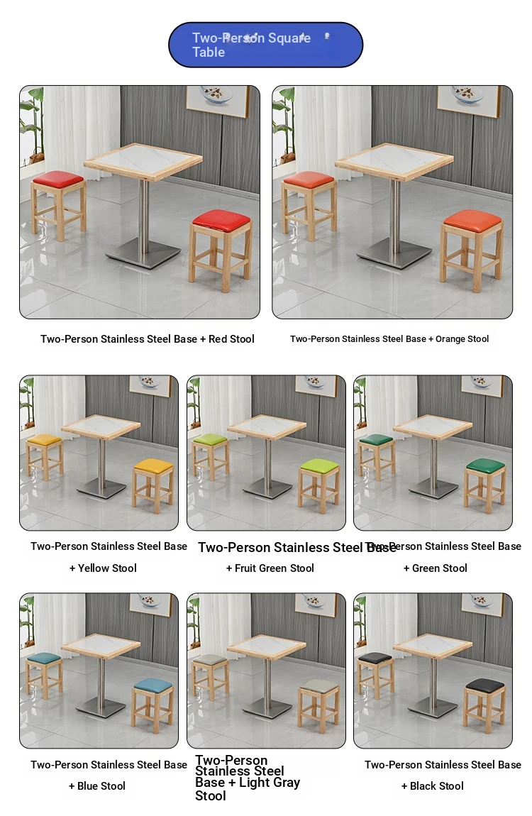 60*60 Double Snow White Stainless Steel Base Seat Single Table