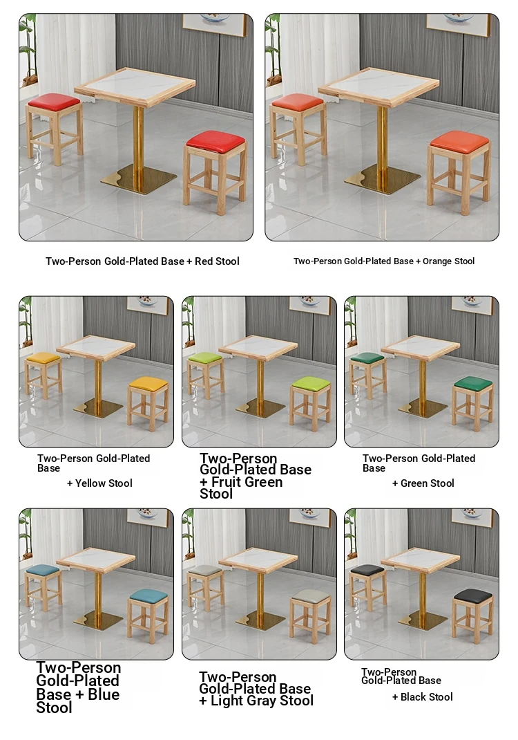 70*70 Double Snow White Gold plated bottom table Orange bench
