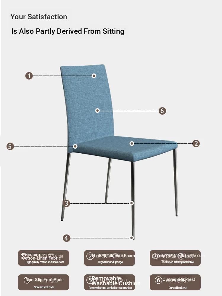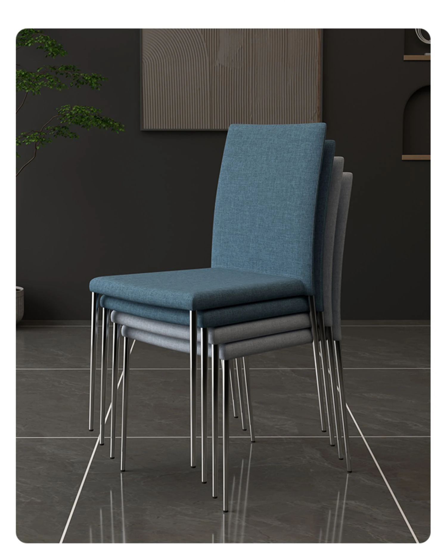 Modern Minimalist Stainless Steel Chair with Fabric Backrest - Stackable Dining Chair for Home, Conference, and Hotel Use