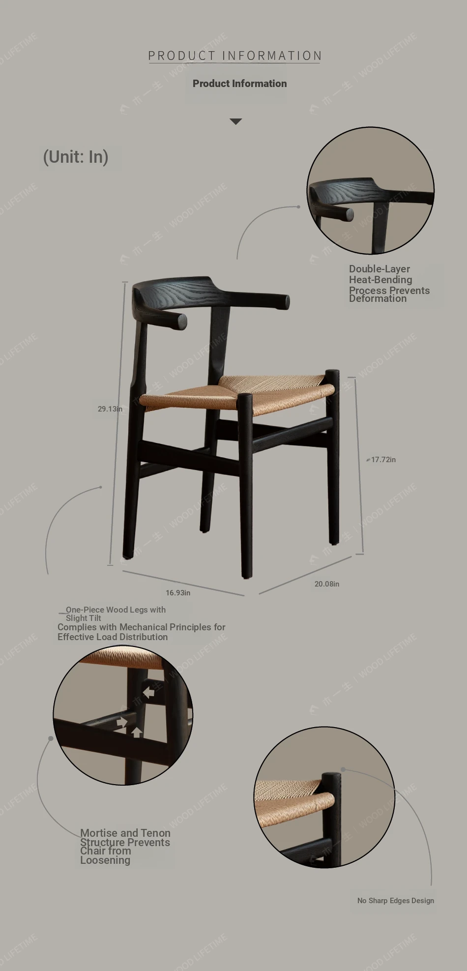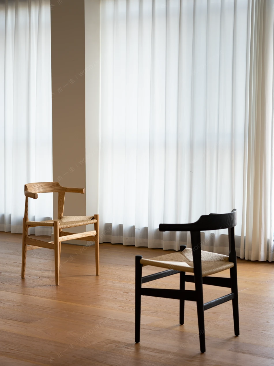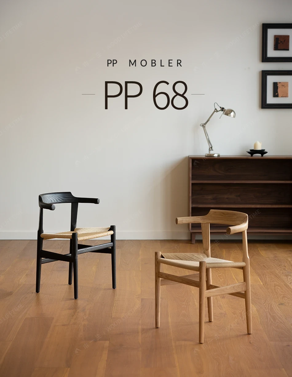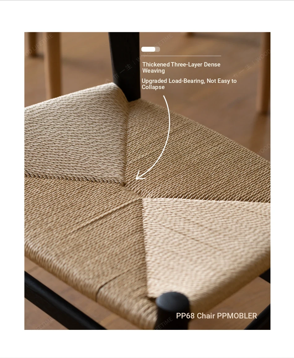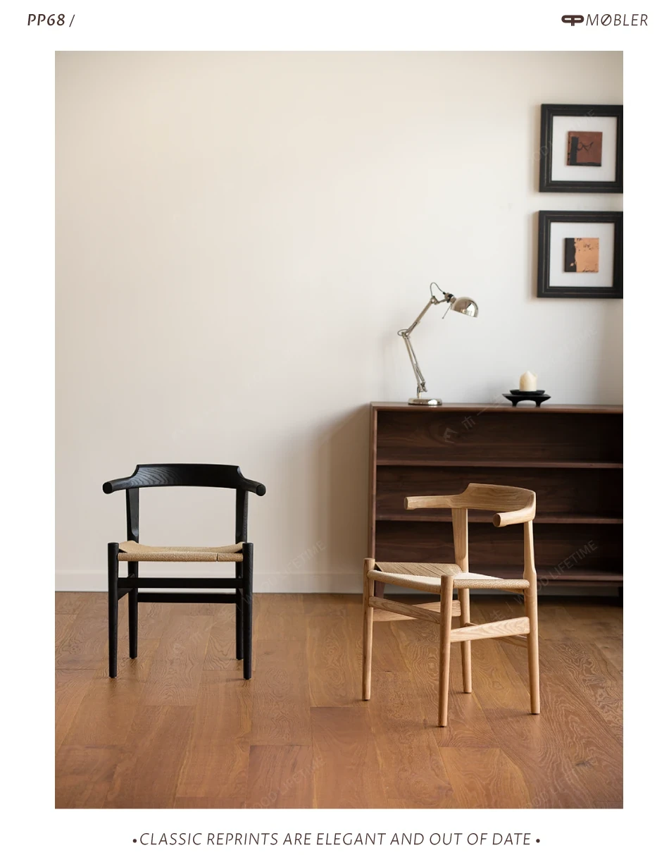 Mu Yi Sheng | PP Mobler Series PP68 Chair - Vintage Scandinavian Solid Wood Dining Chair with Rattan Backrest for Home Use