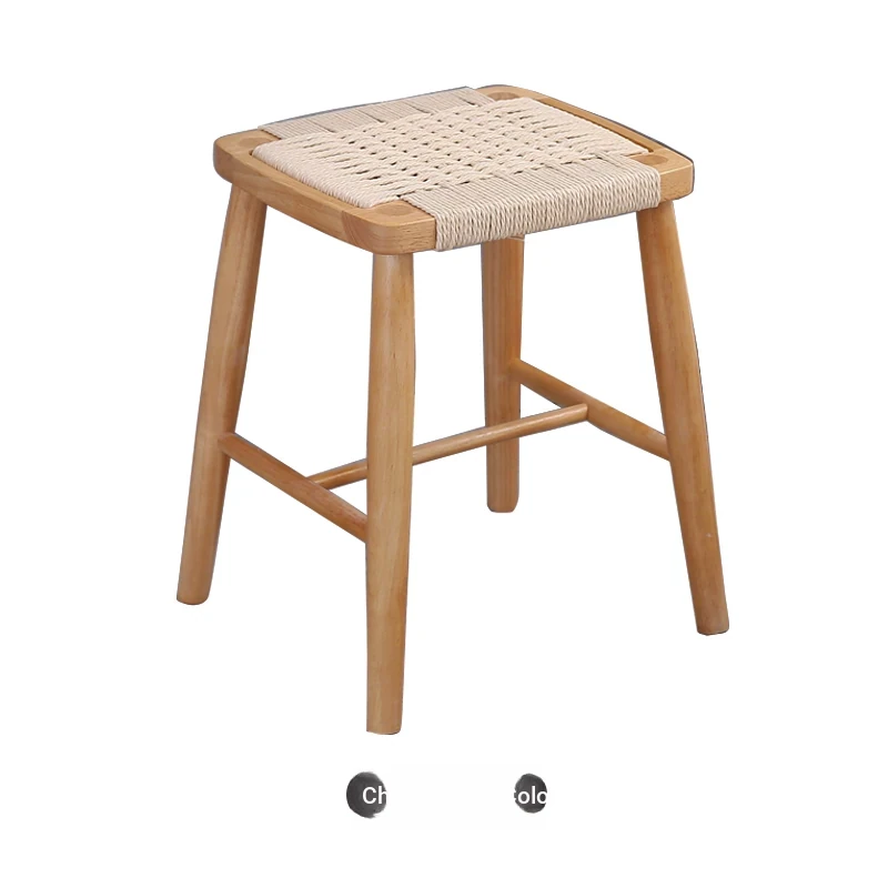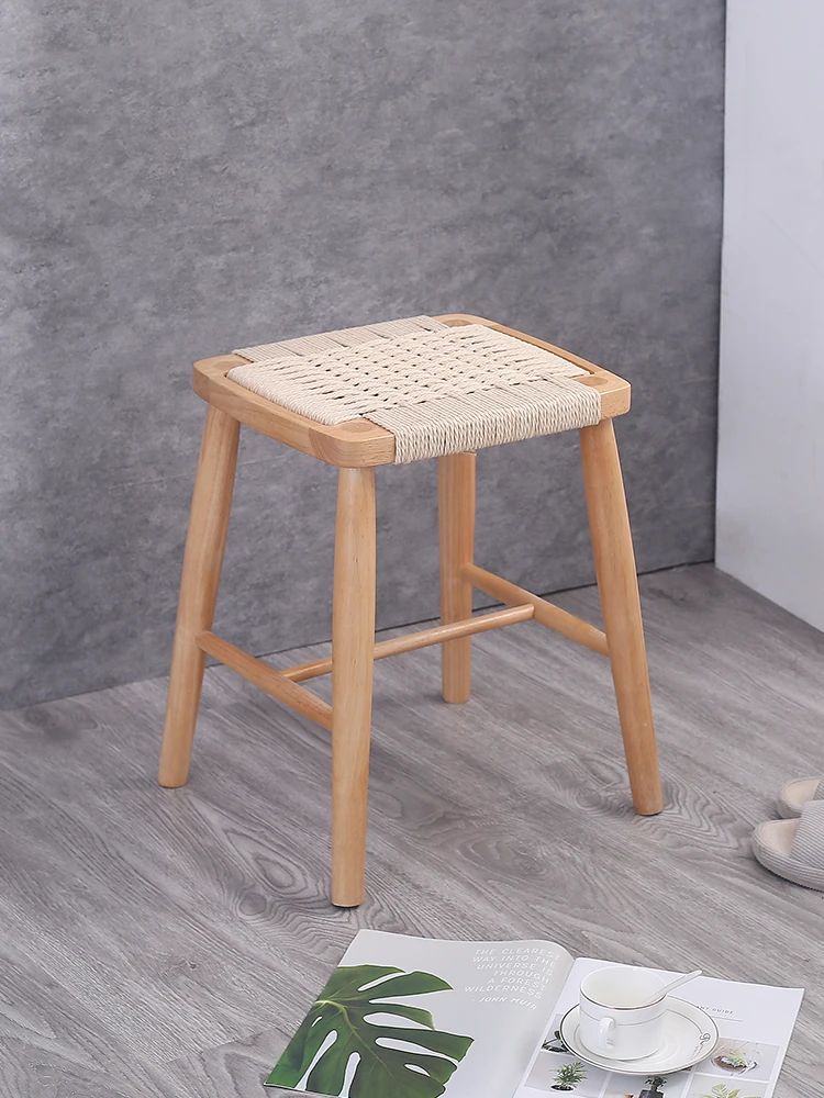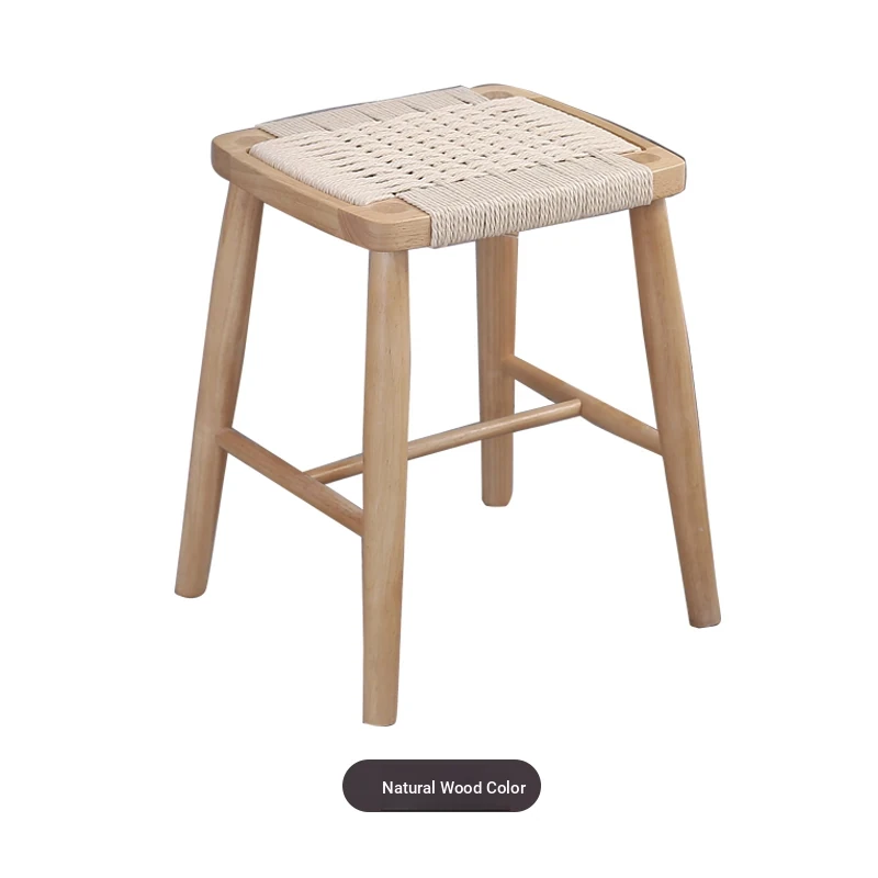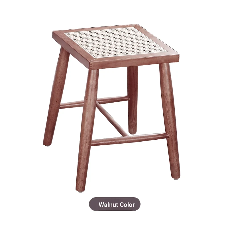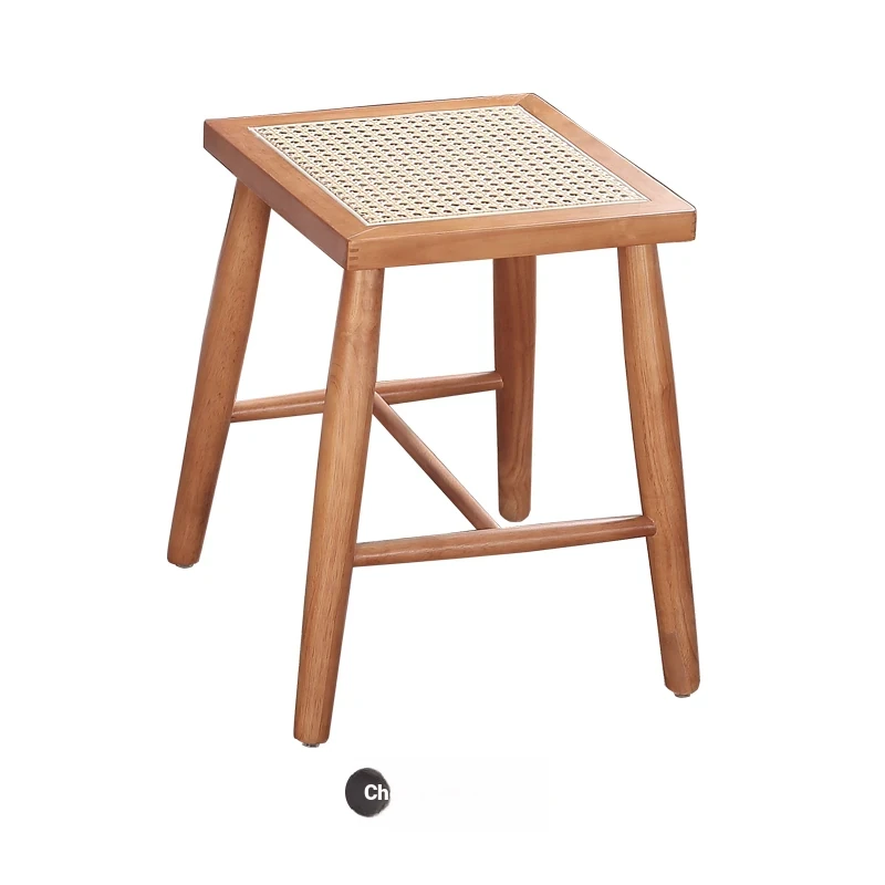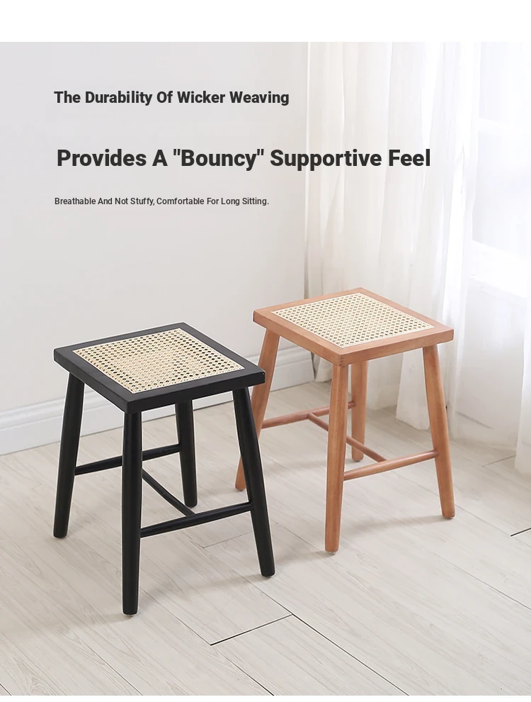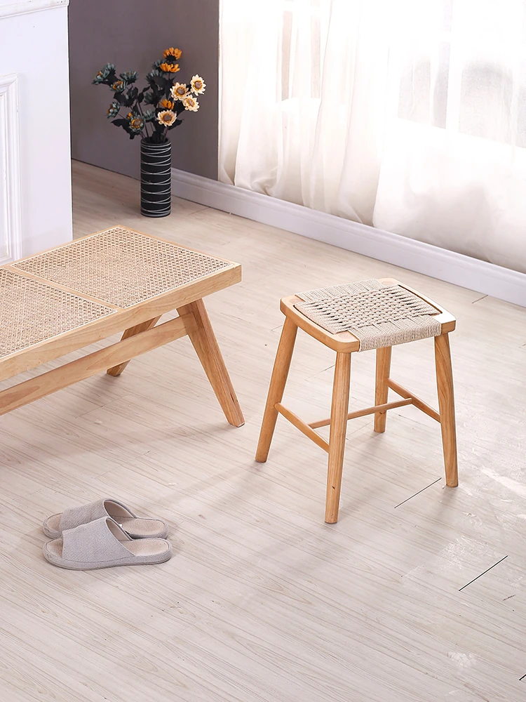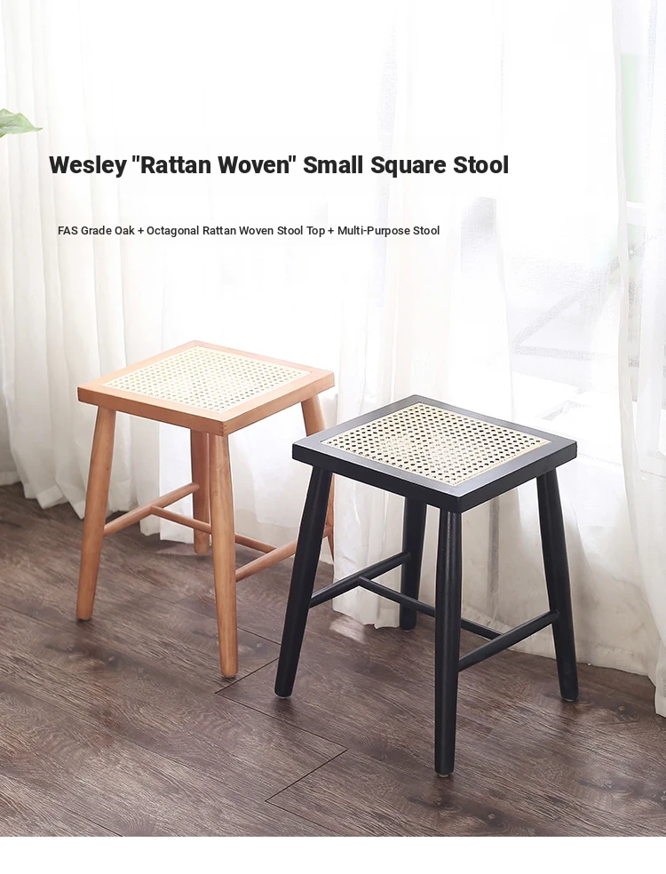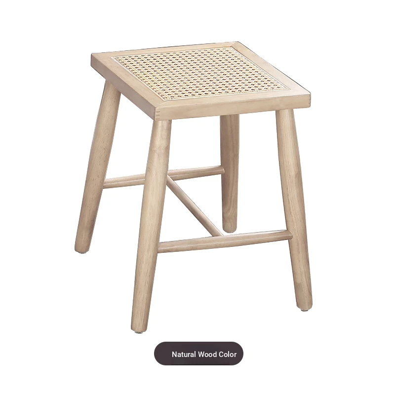 Nordic Modern Solid Wood Makeup Stool - Rattan-Woven Square Stool for Living Room and Bedroom, Minimalist Design in Oak, Perfect for Daily Use