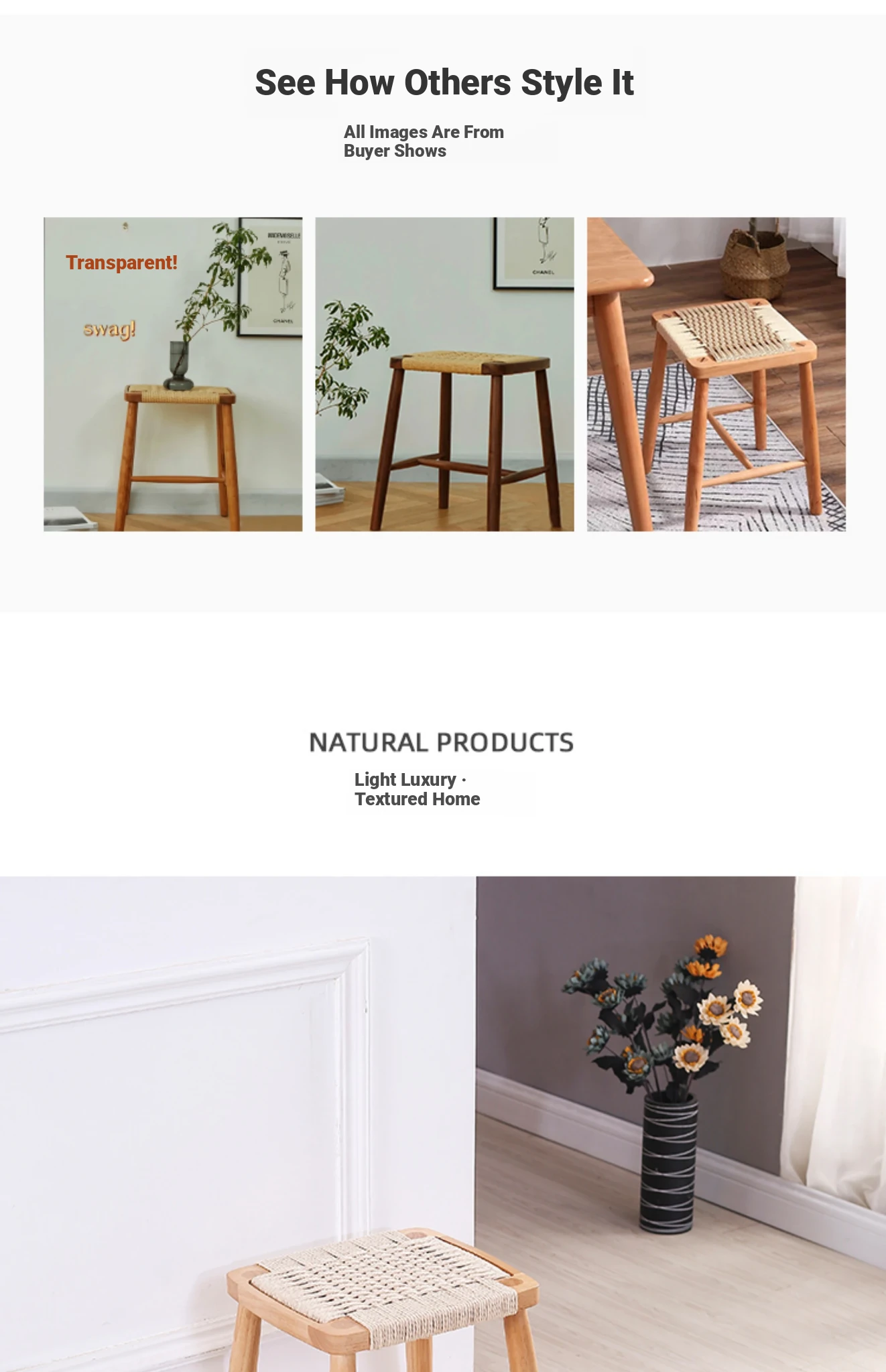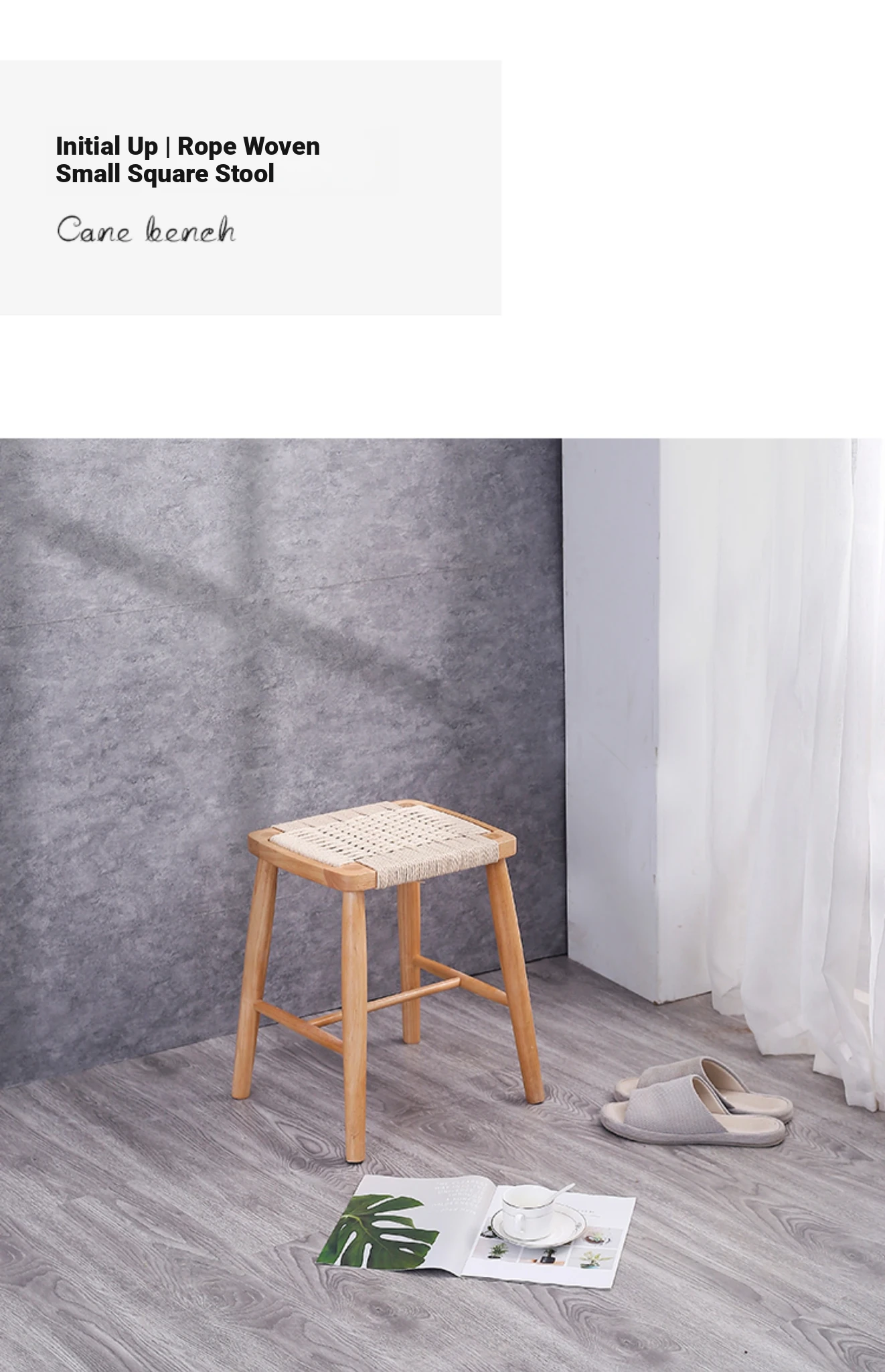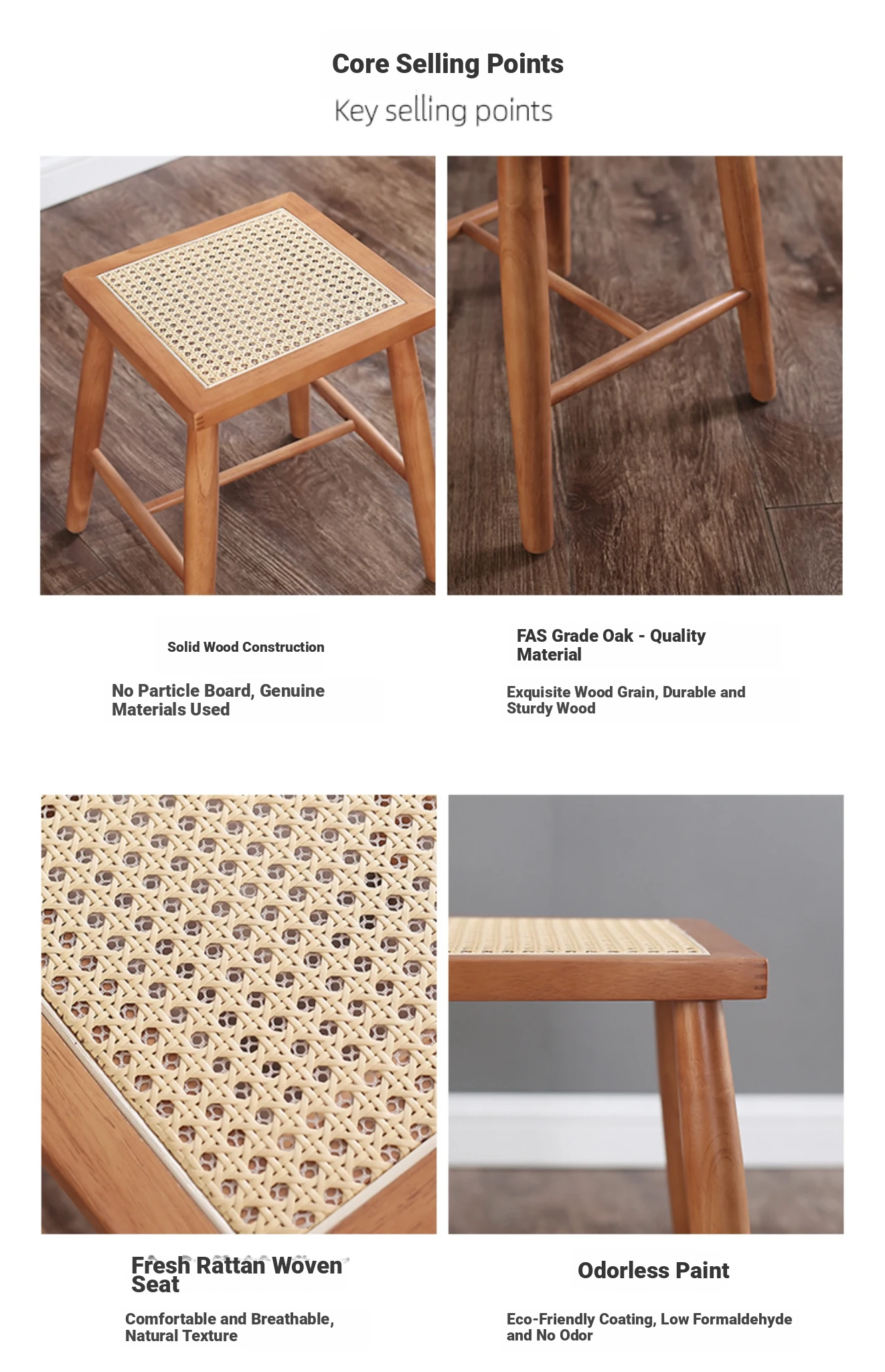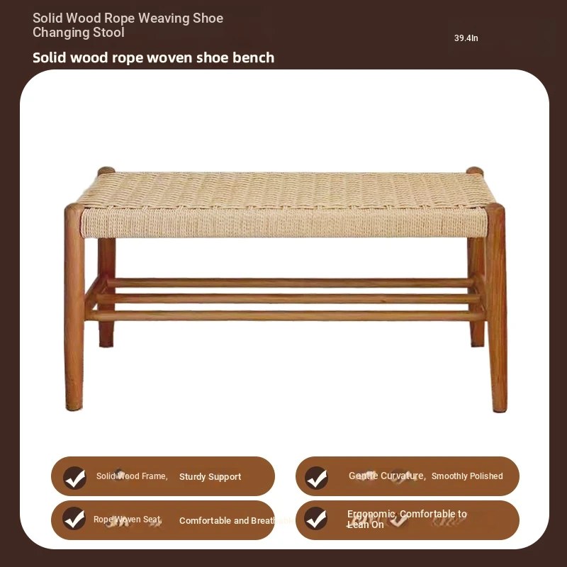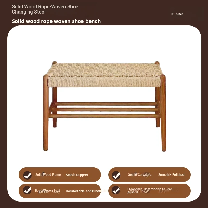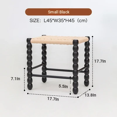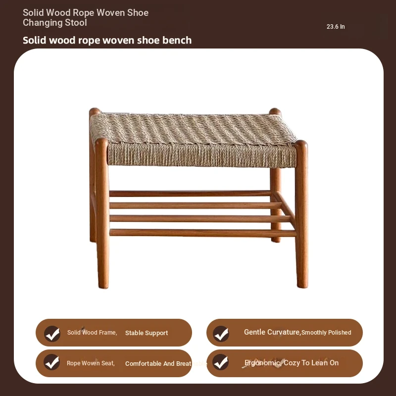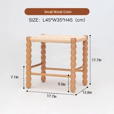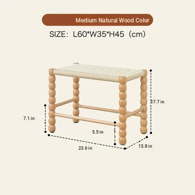 Nordic Modern Solid Wood Makeup Stool - Rattan-Woven Square Stool for Living Room and Bedroom, Minimalist Design in Oak, Perfect for Daily Use