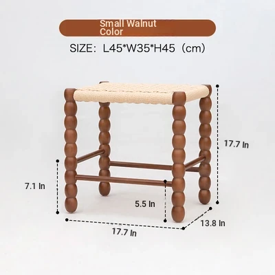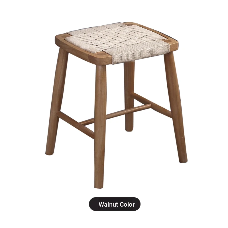 Rope-woven small square stool Walnut