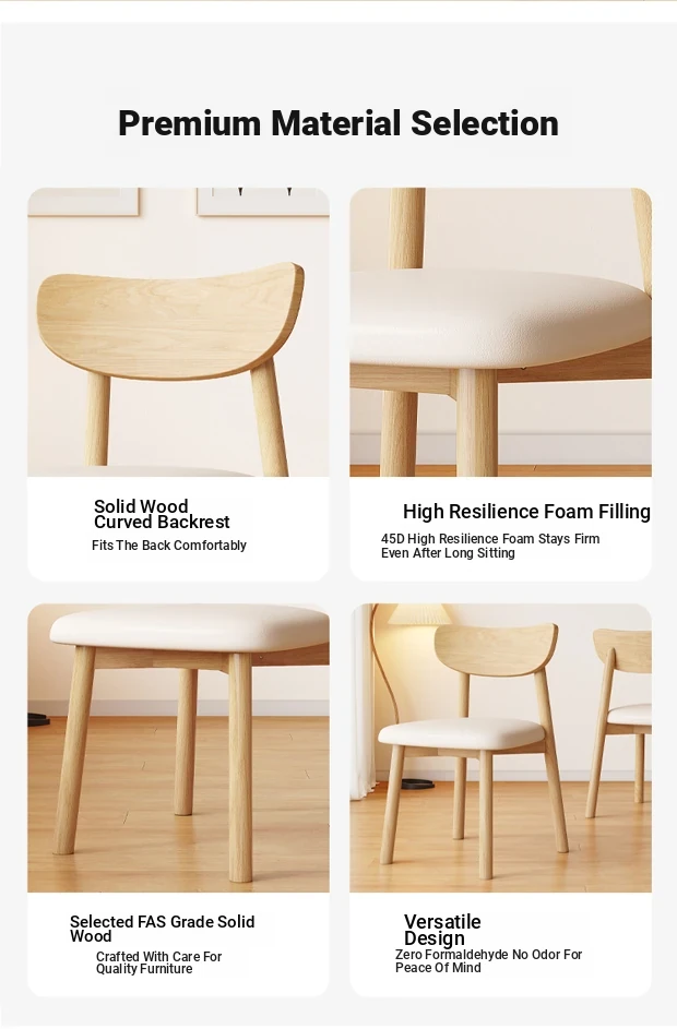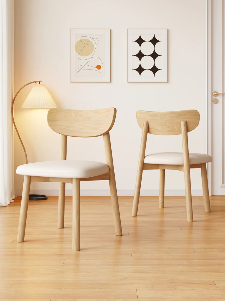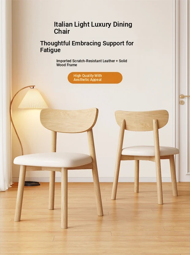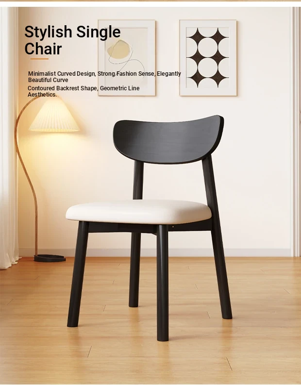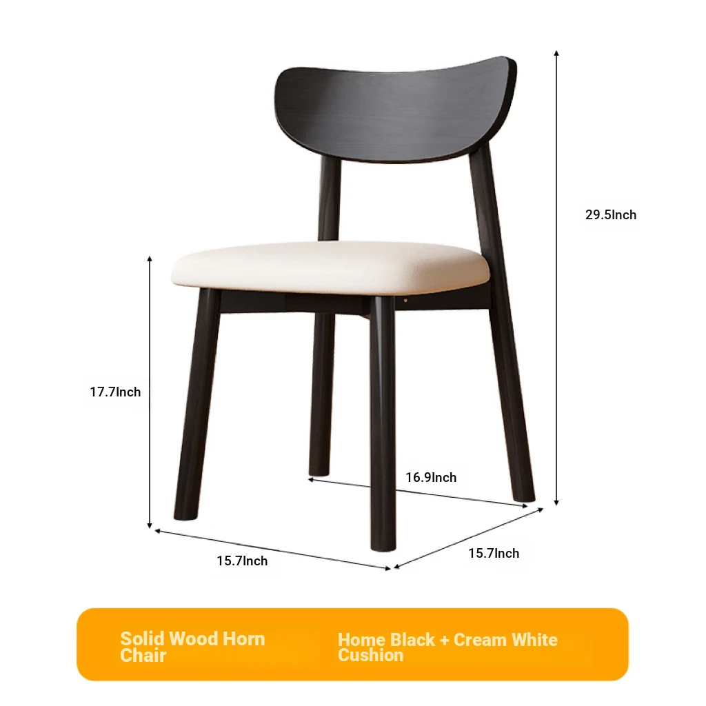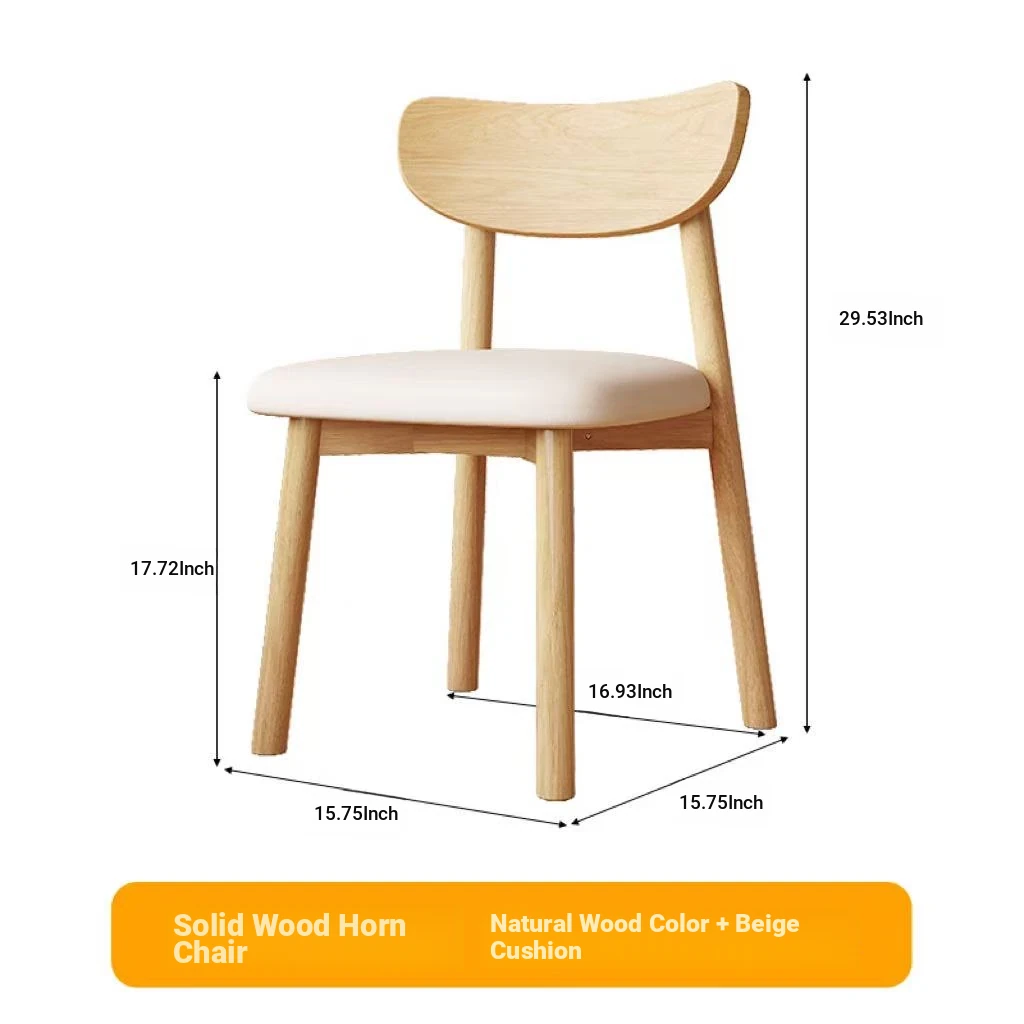 Nordic Solid Wood Horn Chair - Elegant Cream Upholstered Dining Chair for Home & Hotels, Modern Minimalist Design, Perfect for Restaurants and Cozy Dining Spaces