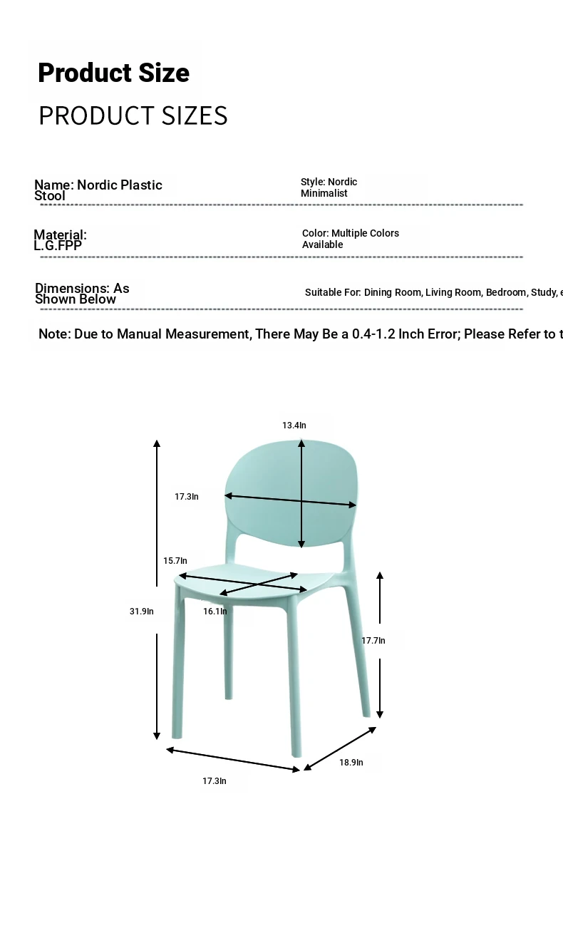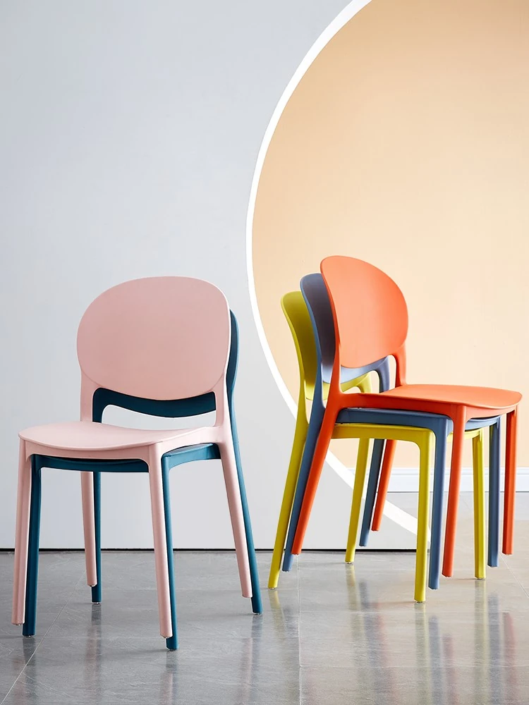 Nordic Style Dining Chairs - Trendy Plastic Stackable Chairs with Thickened Design, Comfortable Backrest for Adults, Perfect for Minimalist Living Rooms and Long Sitting Sessions