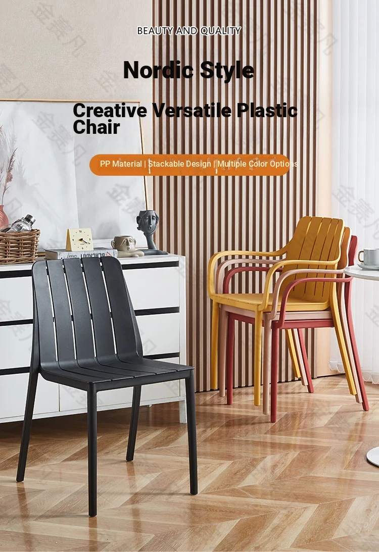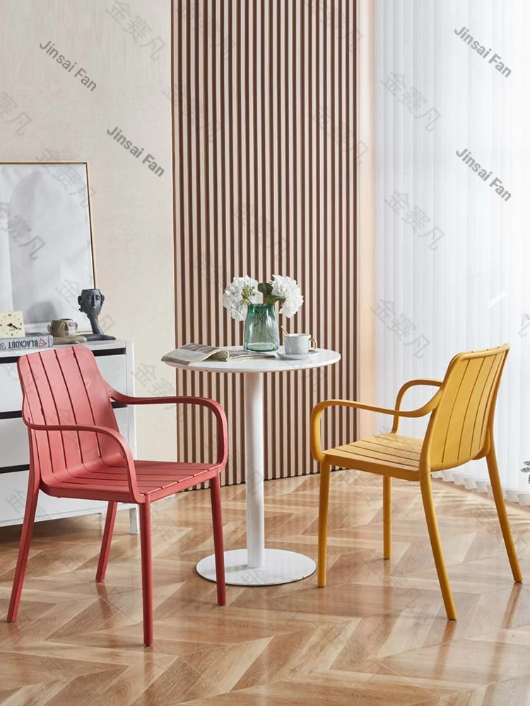 Nordic Style Plastic Chair with Backrest - Durable Outdoor and Indoor Use, Thickened Design for Café and Dining, Hollow-Out, Stackable with Armrests. Perfect for Comfort and Versatility!