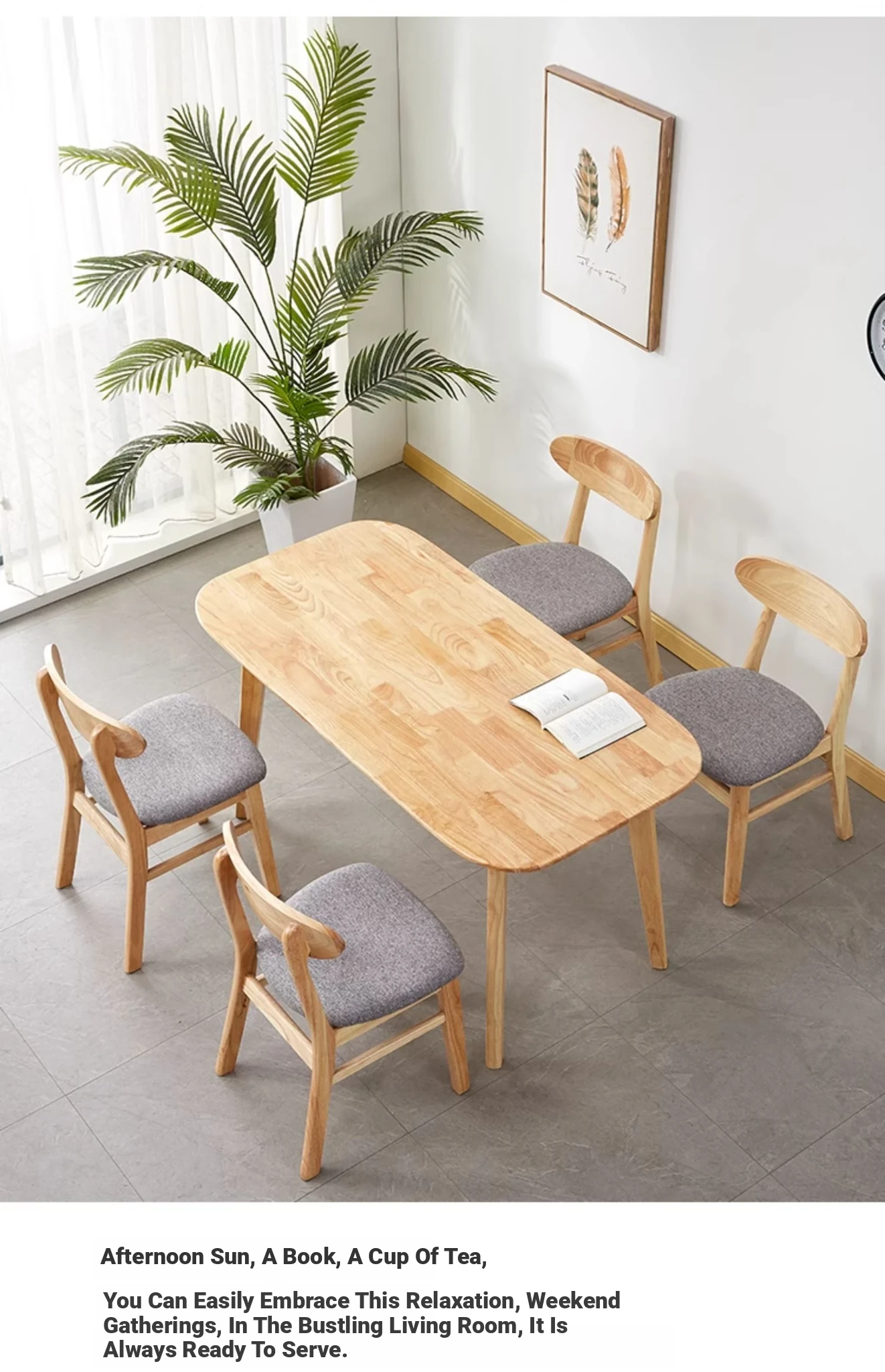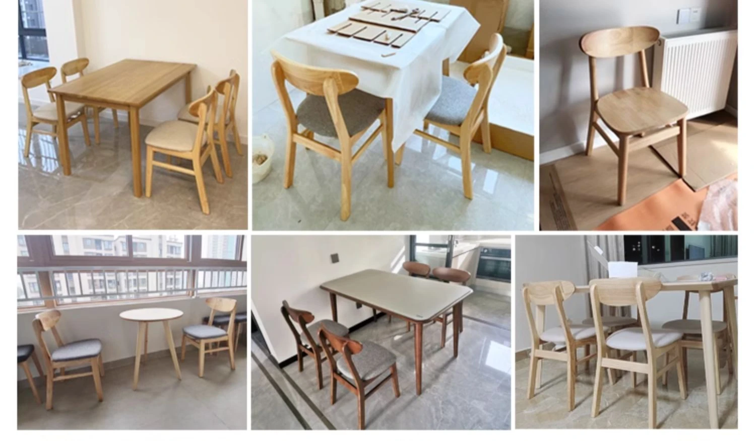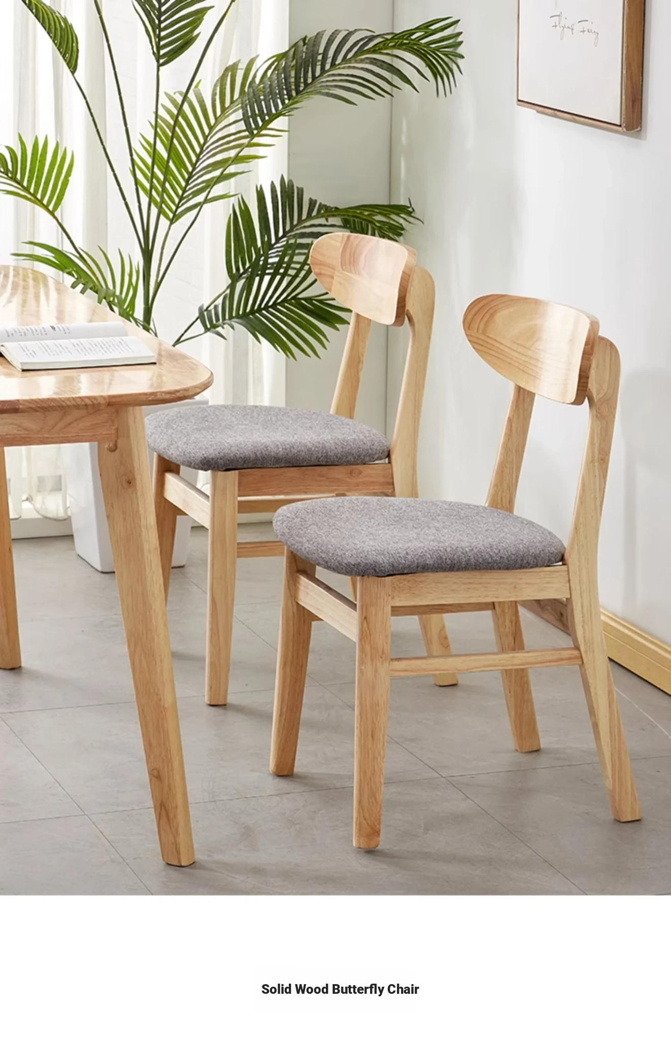 Solid wood chair gray linen cushion