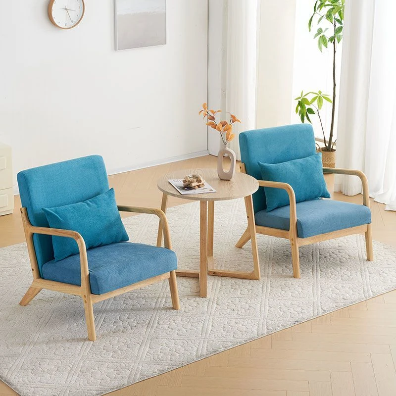 2 Chairs 1 table/[Lake blue cotton and linen] send pillow
