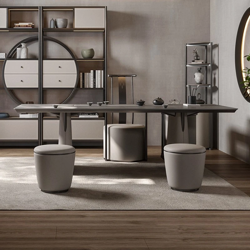Nordic Zen Style Leather Tea Stool - Minimalist Round Ottoman for Tea Ceremony, Perfect for Tea Rooms and Coffee Tables, Soft and Stylish Design