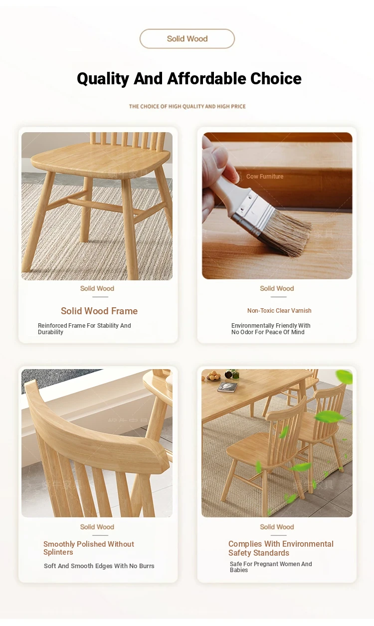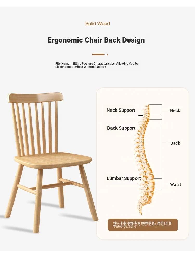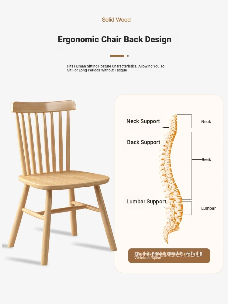 Solid Wood Dining Chair - Nordic Style Home Chair for Dining Tables, Restaurant Backrest Chair, Versatile Desk Stool, Modern Windsor Chair for Comfort and Elegance