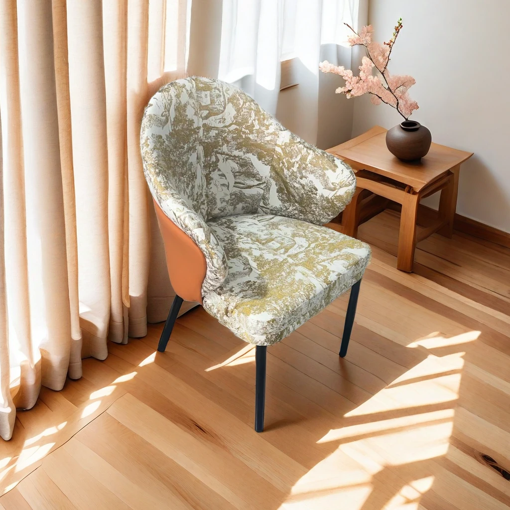 Orange leather + golden yellow cotton and linen "Blanca 05 color]