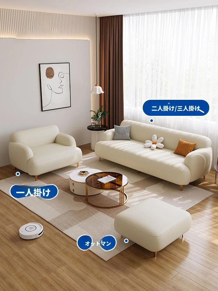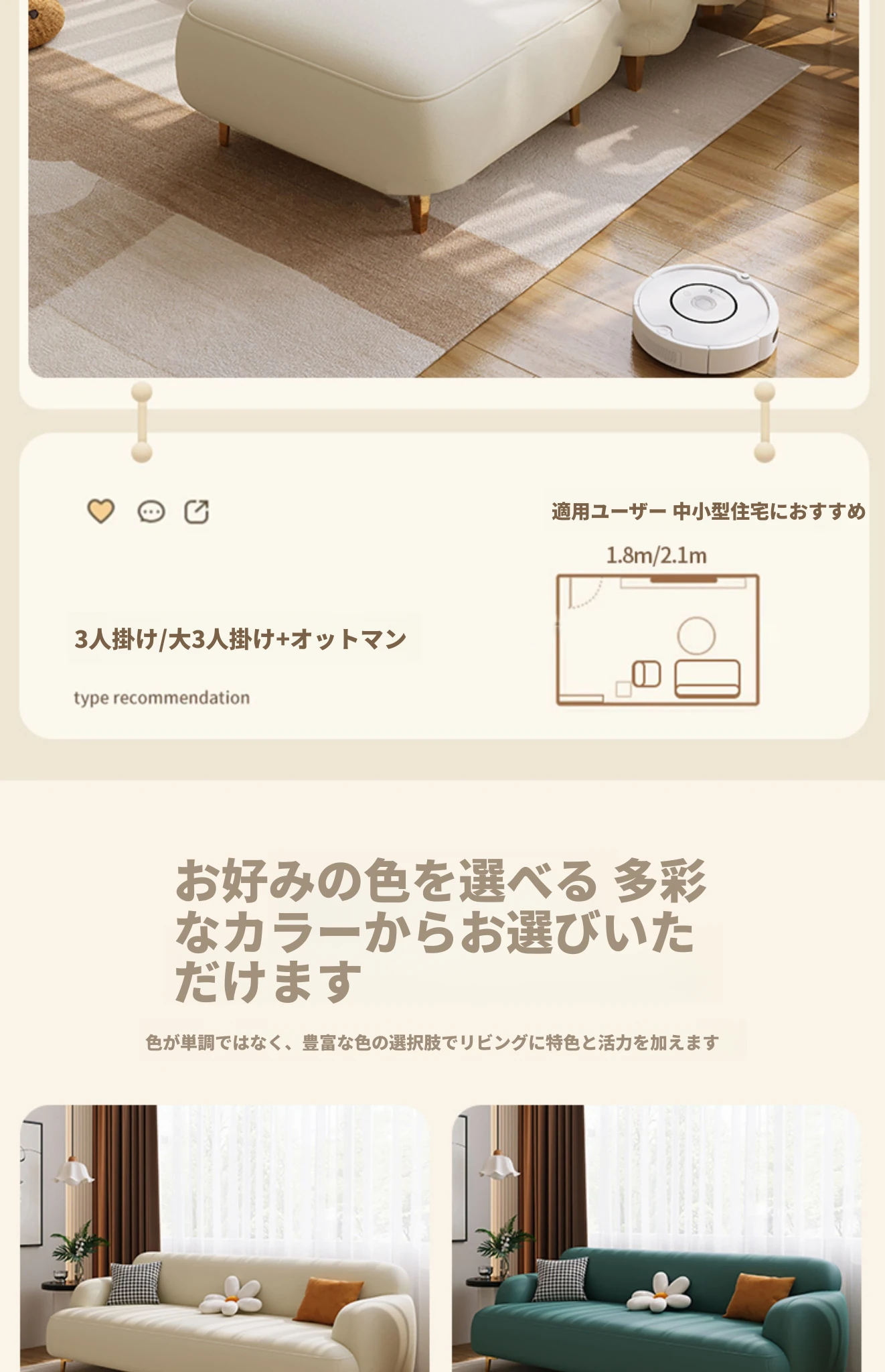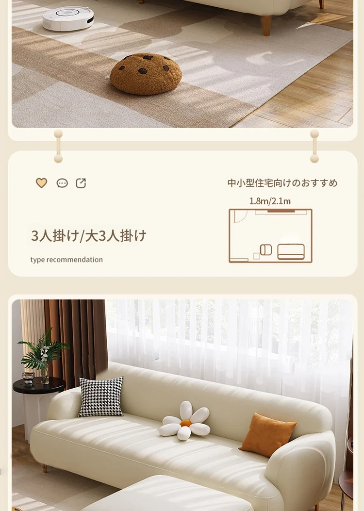 2023年新作!おしゃれなデザインの布製ソファ - 小型リビングにぴったり!2人掛け・3人掛けのストレートタイプ。猫の爪にも強い素材で、クリーム風のかわいいアパートスタイル!お部屋を素敵に演出します!