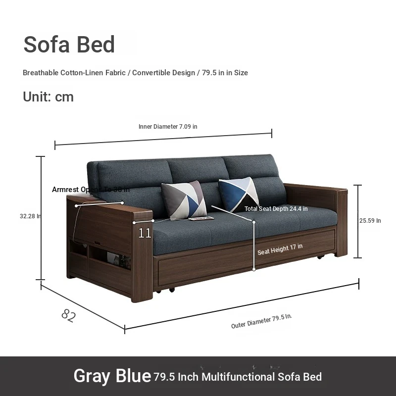 "Gray blue" 79.53 ins multi-functional sofa bed