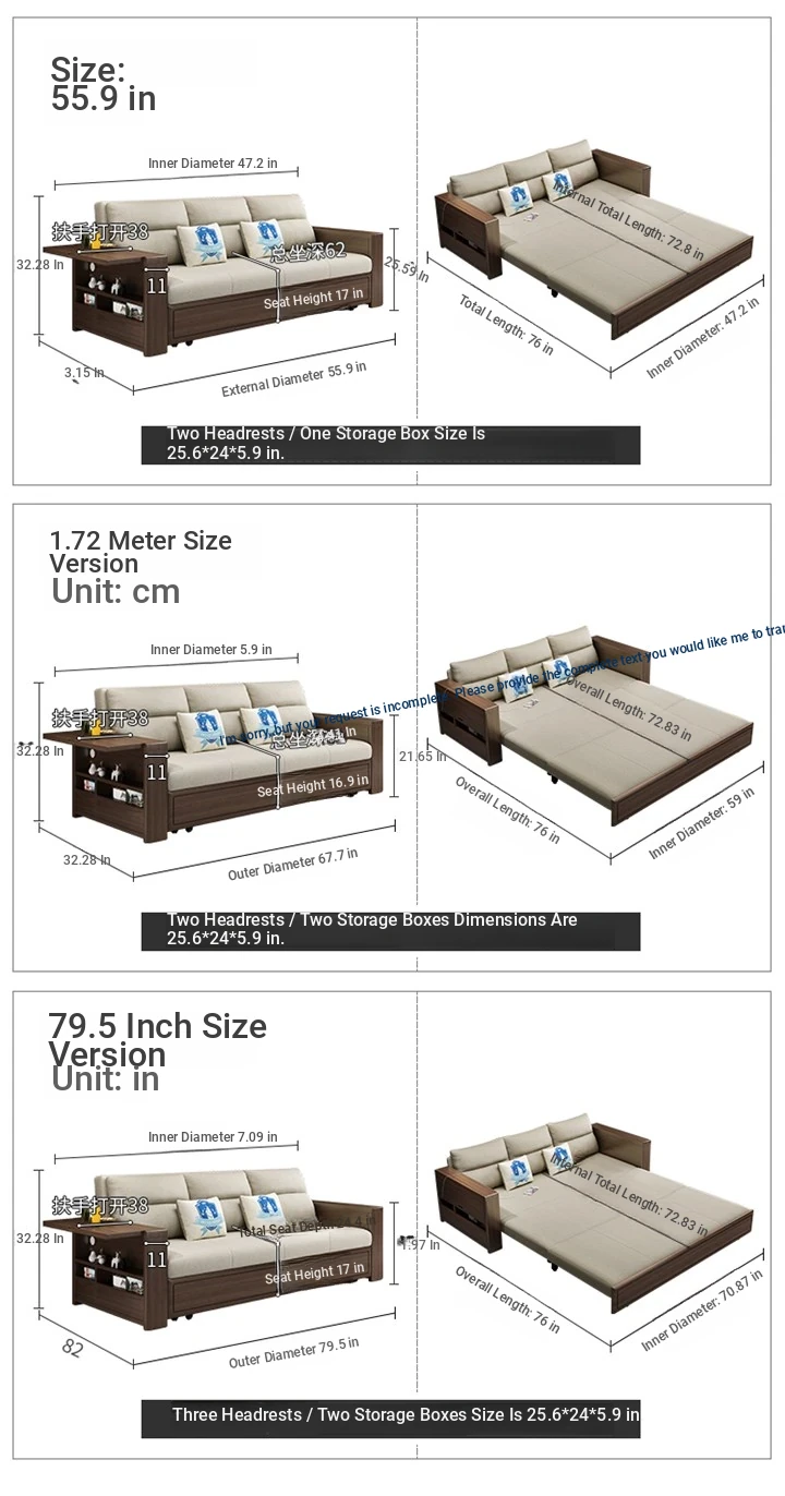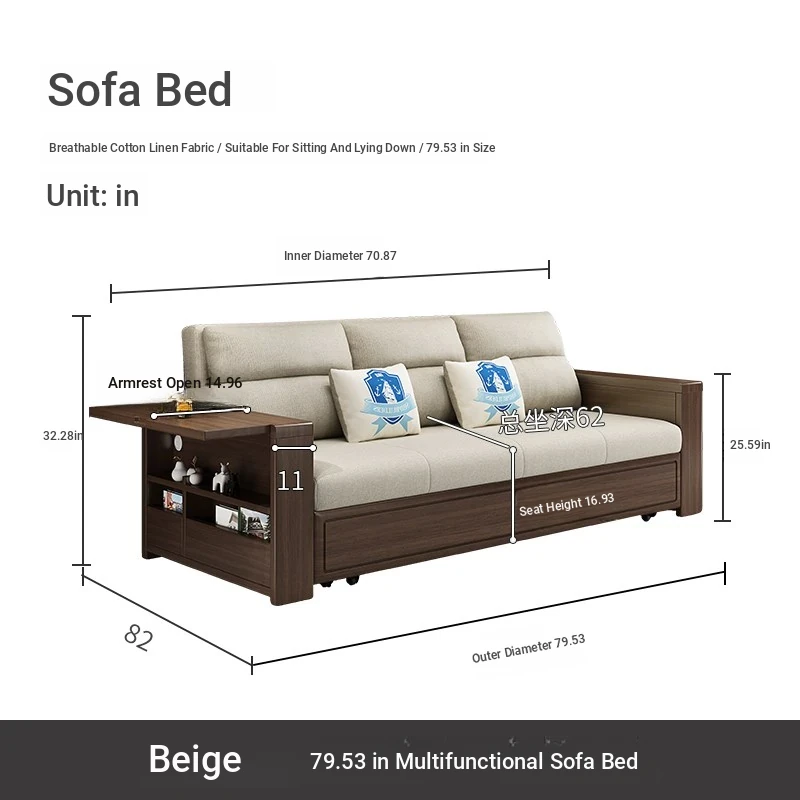 [Beige] 79.53 in Multifunctional Sofa Bed