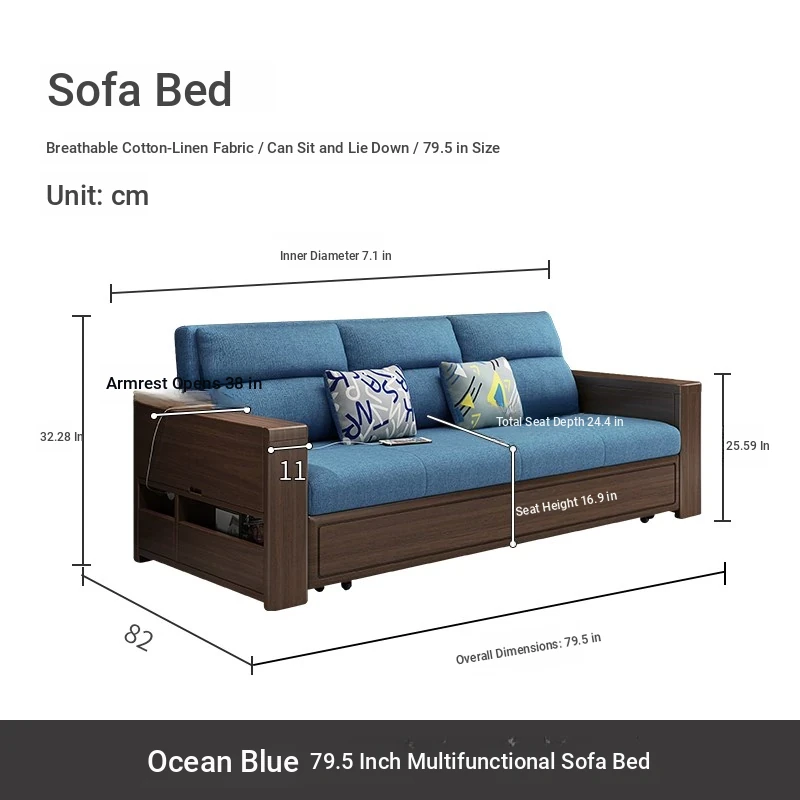 "Sea blue" 79.53 ins multi-functional sofa bed