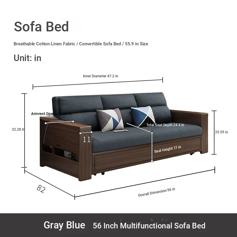 "Gray blue" 55.91 ins multi-functional sofa bed