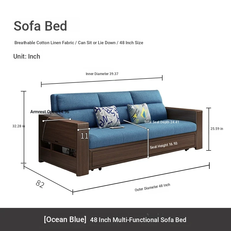 "Sea blue" 48.03 ins multi-functional sofa bed