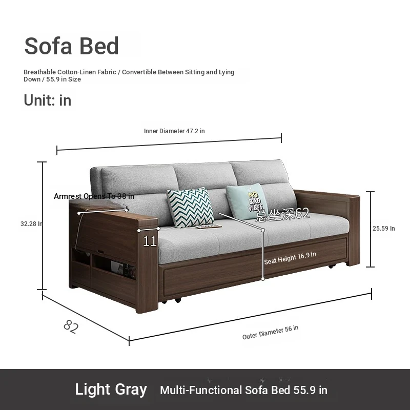 [Light gray] 55.91 in Multifunctional Sofa Bed