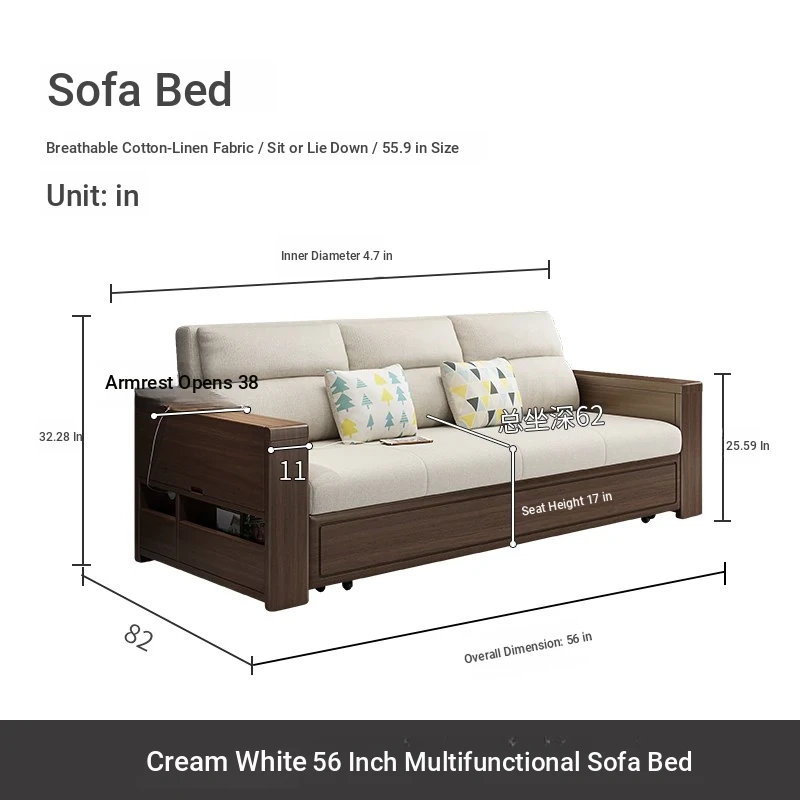 [Beige] 55.91 in Multifunctional Sofa Bed