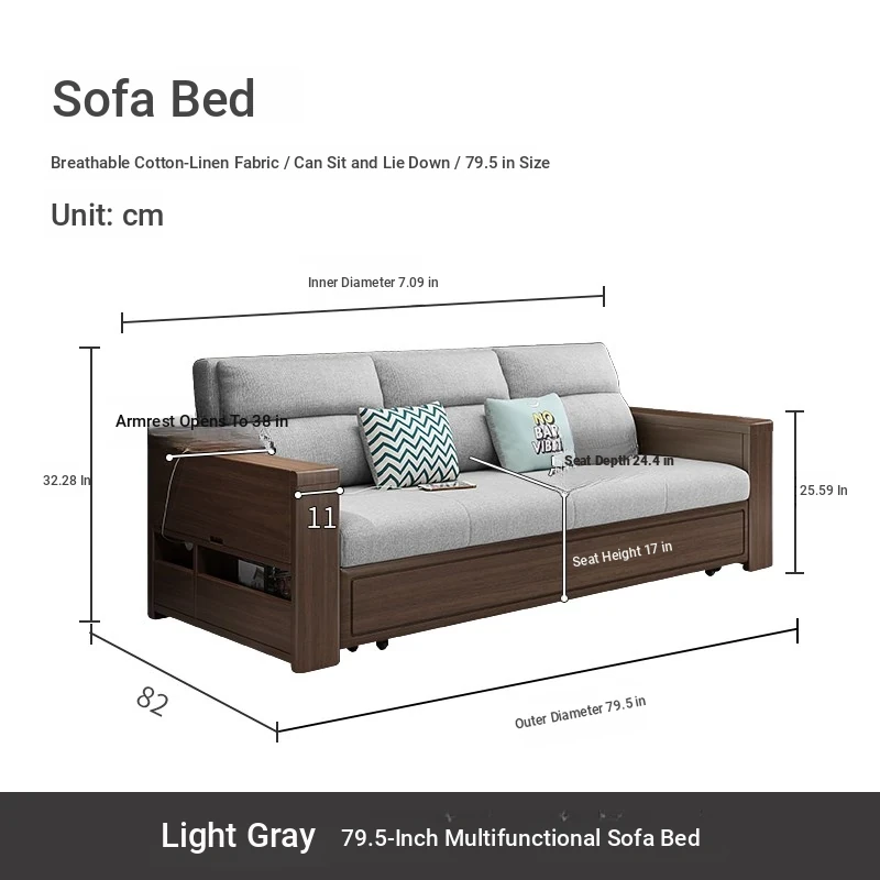 [Light gray] 79.53 in Multifunctional Sofa Bed