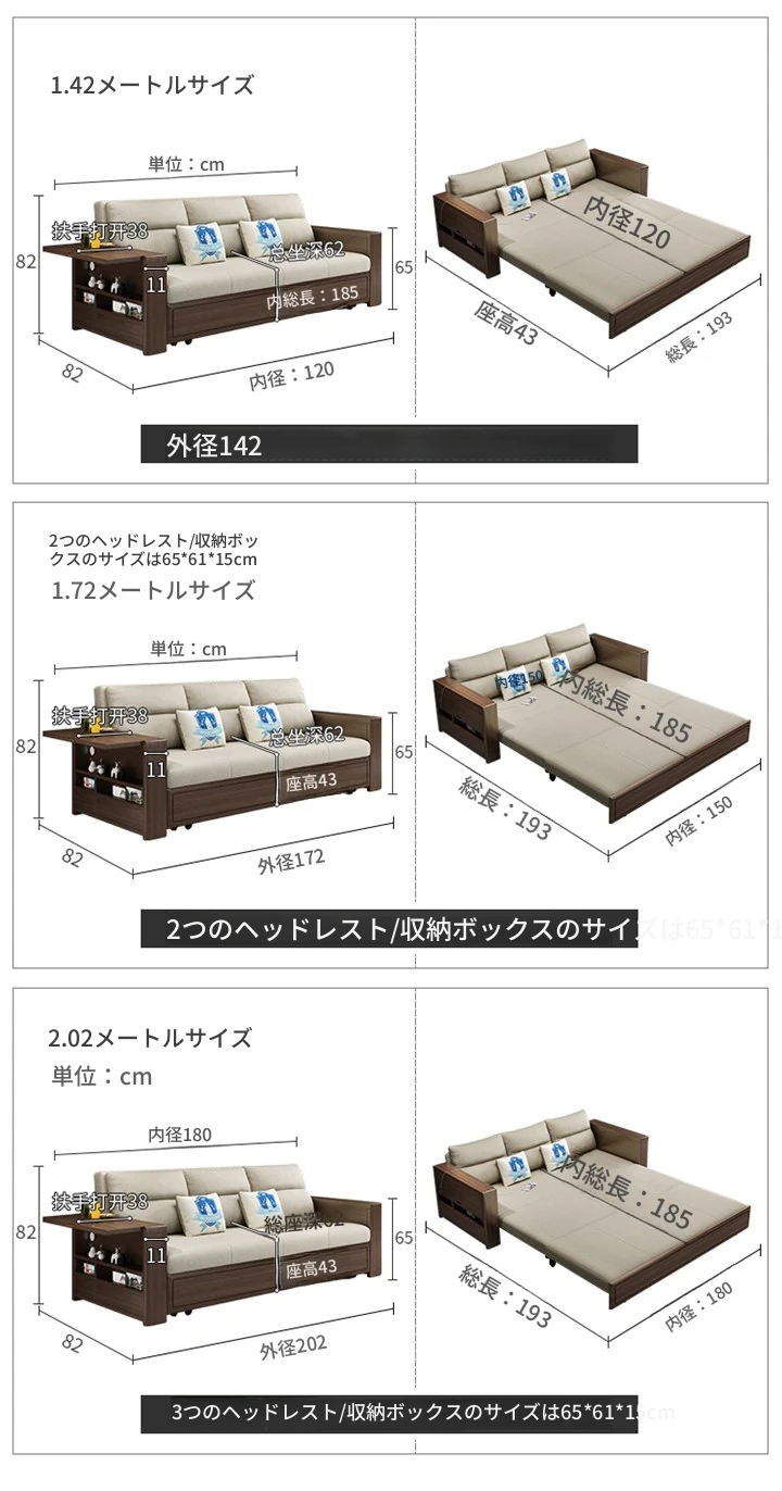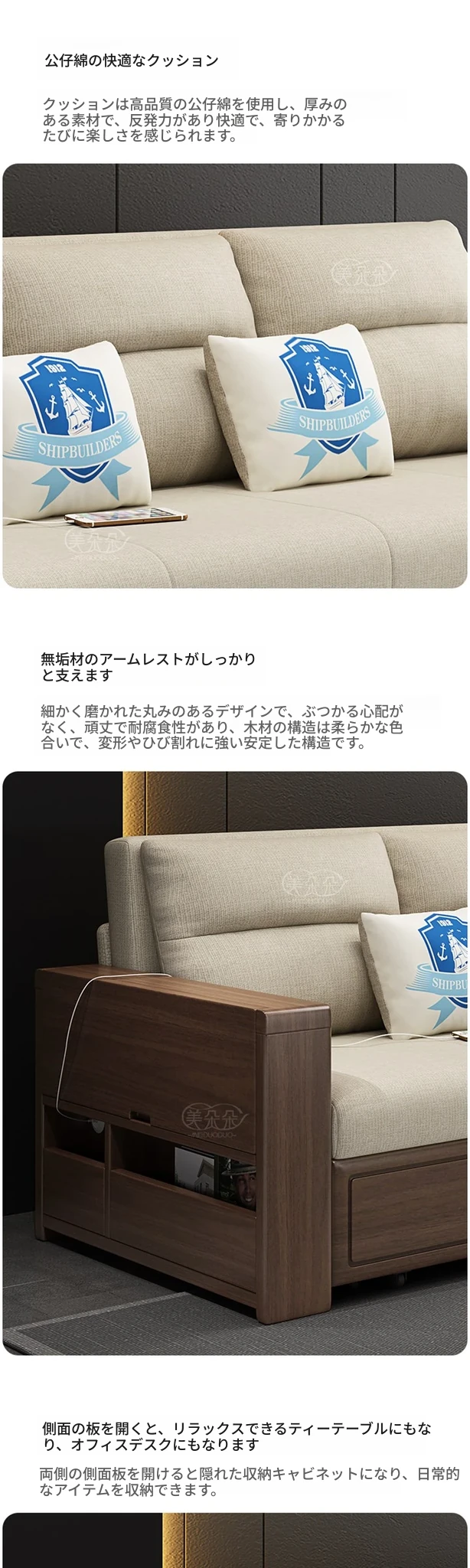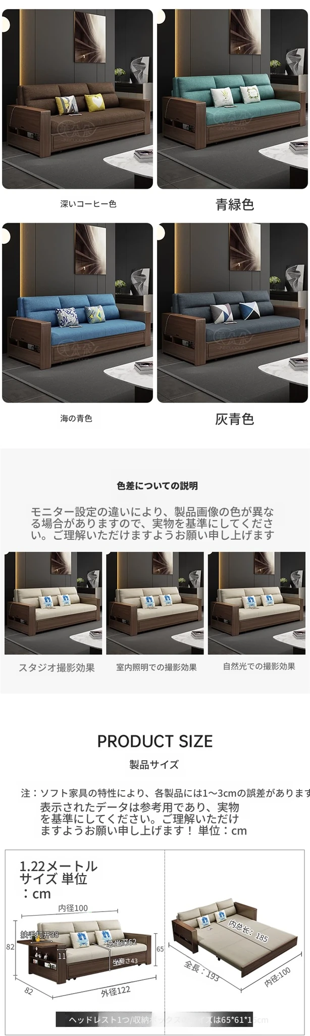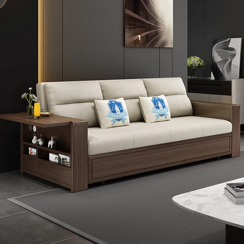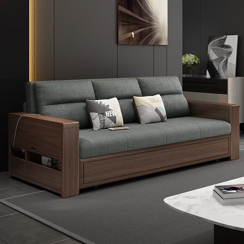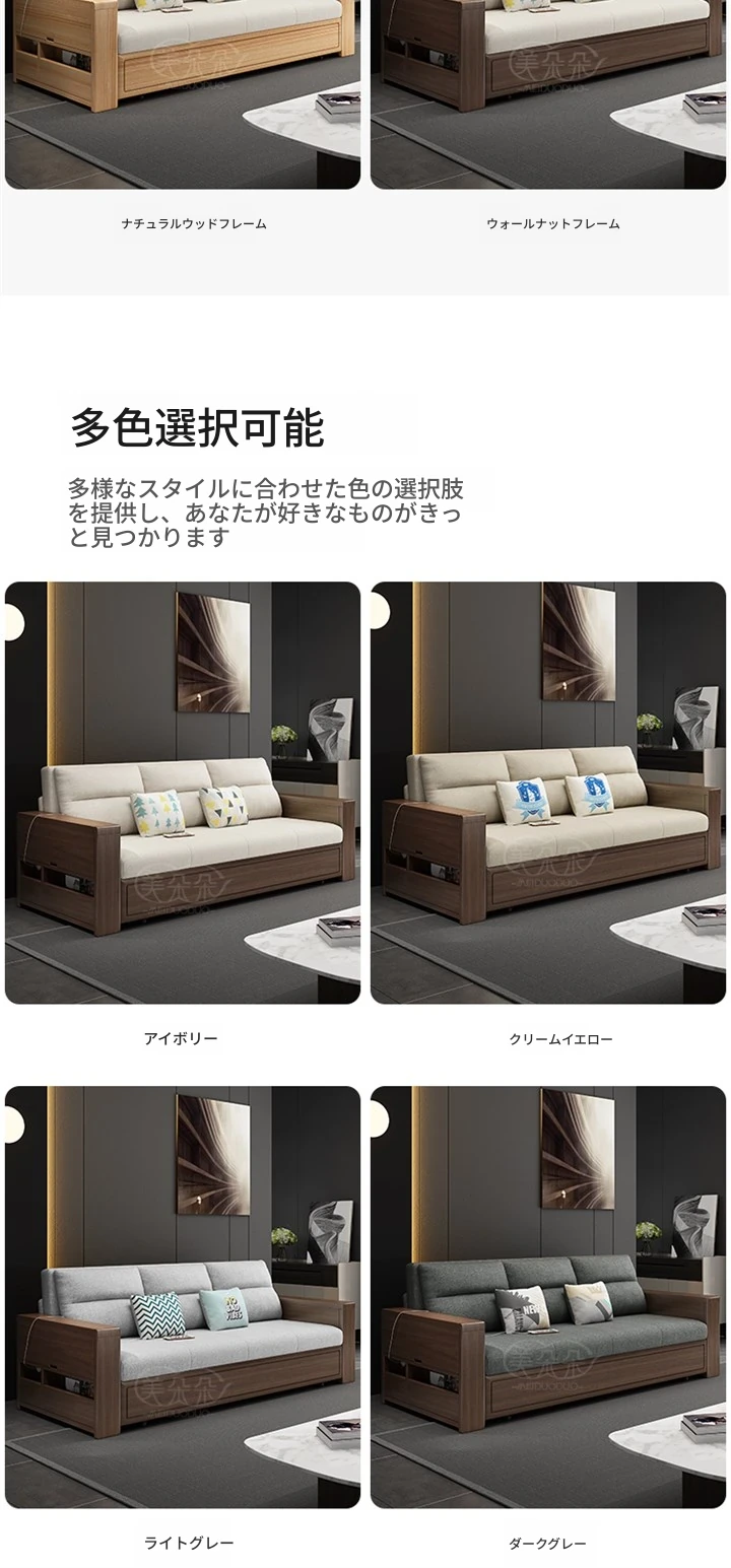 2024年新作!胡桃木の無垢ソファベッド - 小型住宅に最適な中華スタイルの引き出しソファ。折りたたみ可能で、座ることも寝ることもできる便利な2WAYデザイン!おしゃれで機能的な空間を演出します。