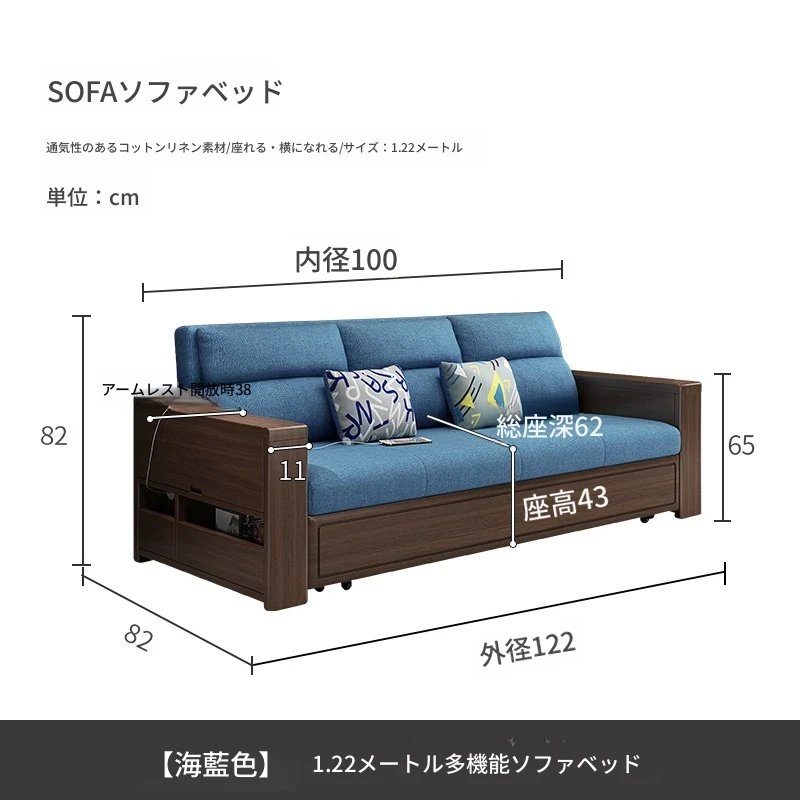 【グレー×ブルー】1.22メートル多機能ソファベッド