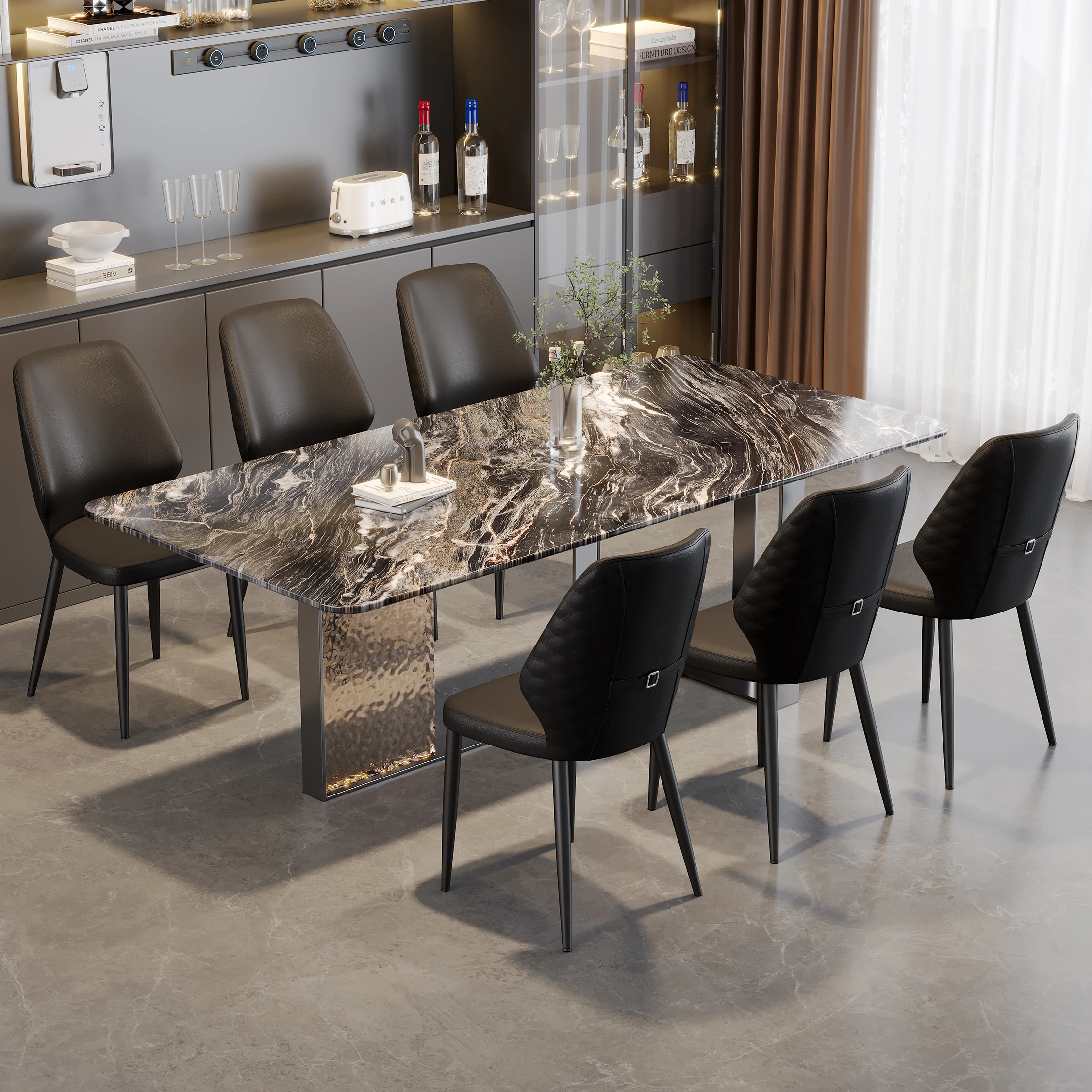 2025年新作!高級イタリアンデザインの家庭用ダイニングテーブル&チェアセット。ラグジュアリーなソフトパッキング背もたれ椅子、ホテルやレストランにも最適。洗練されたスタイルで、あなたの食卓を格上げします!