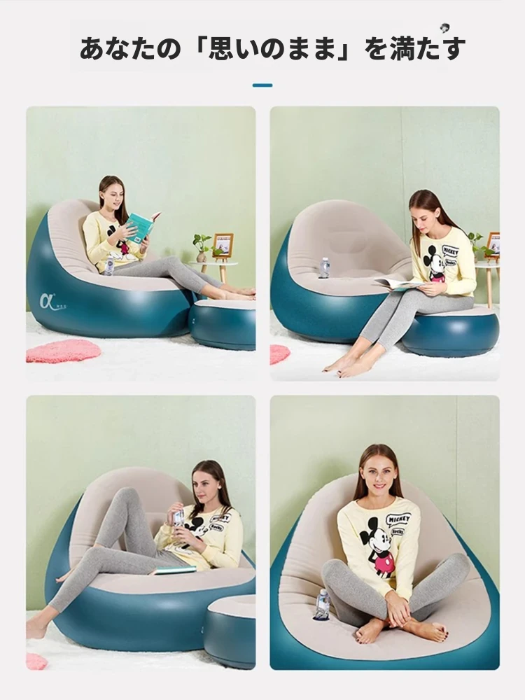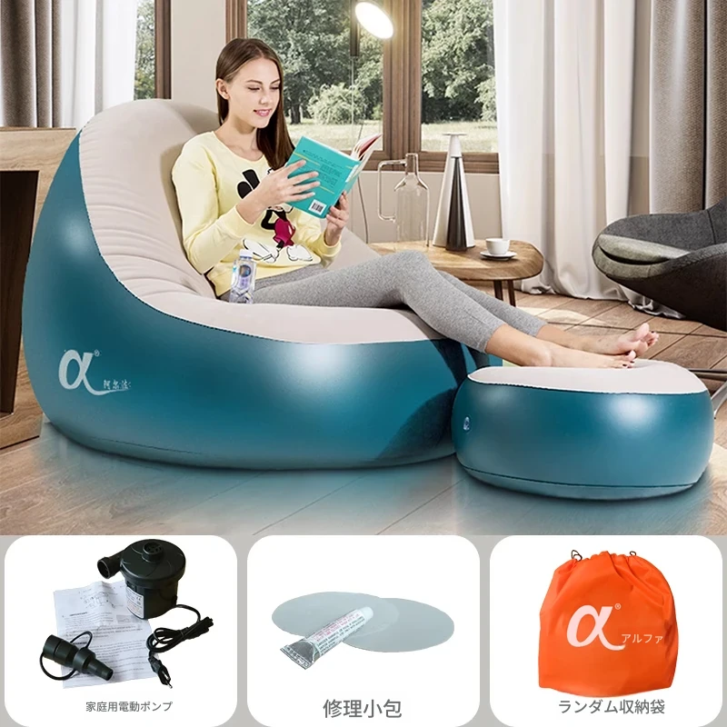 ソファ+オットマン+修理キット+収納バッグ(充電式車用エアポンプ付き)