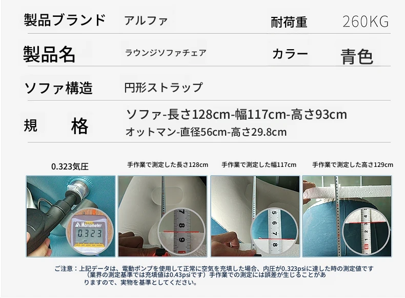 ソファ+オットマン+修理キット+収納バッグ(手動エアポンプ付き)