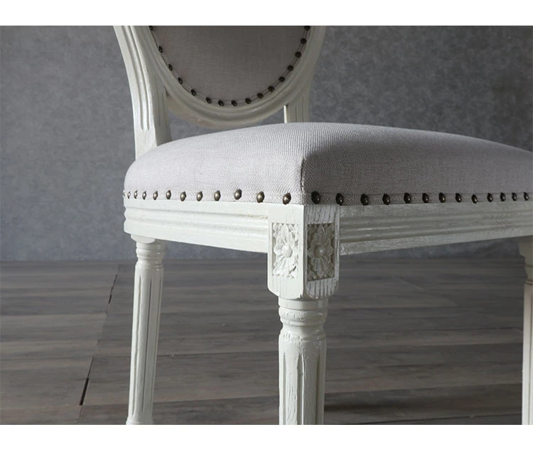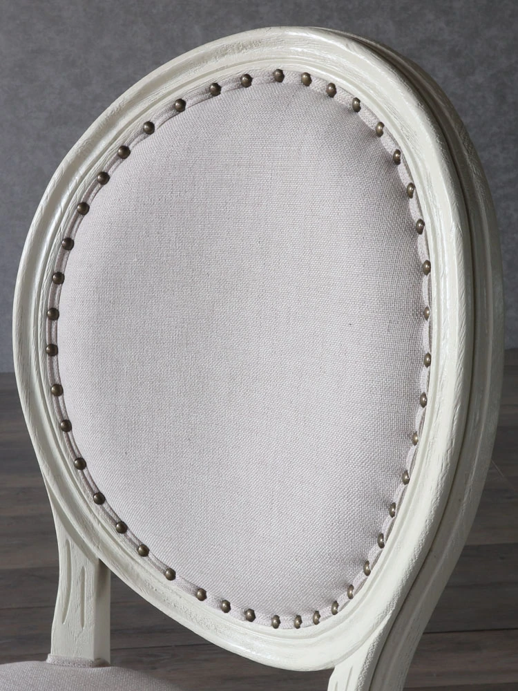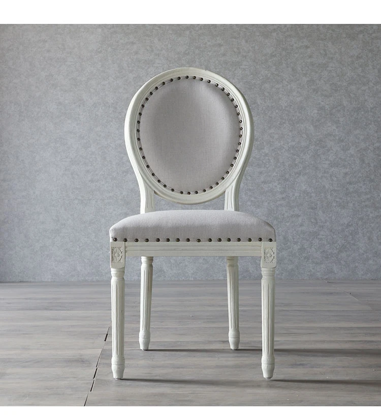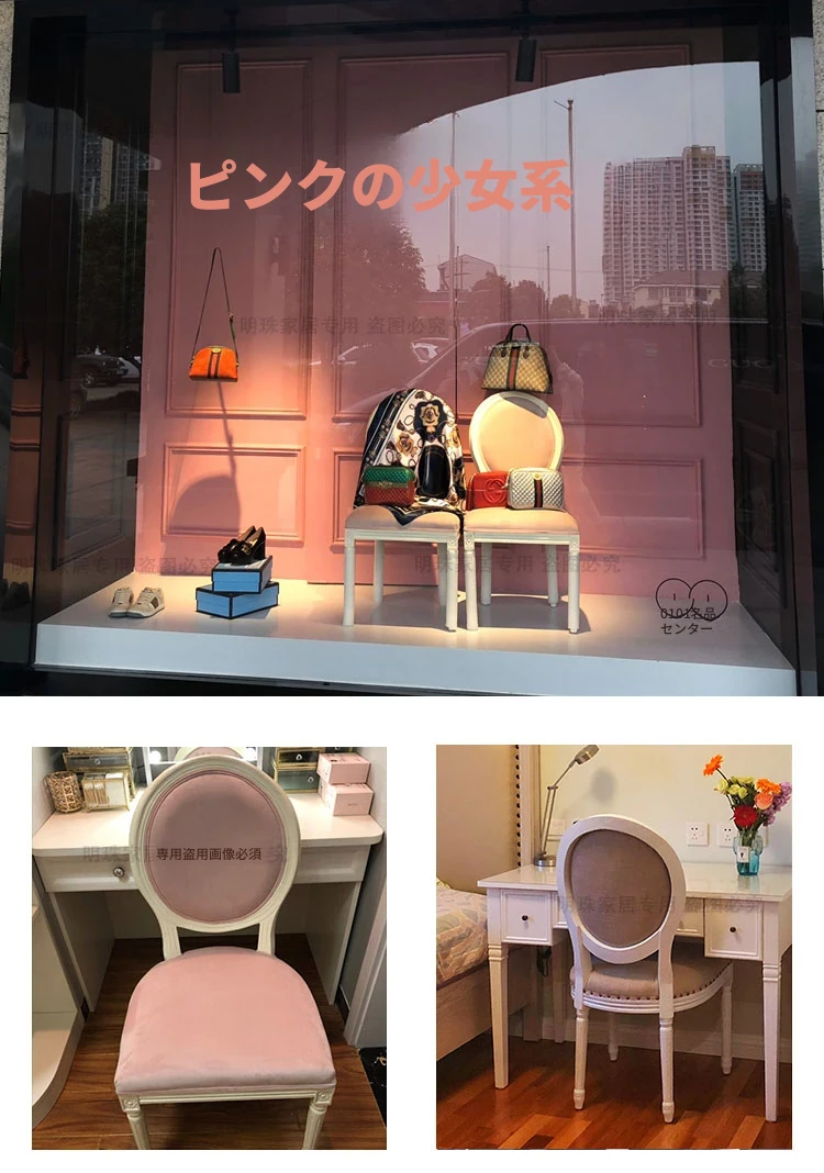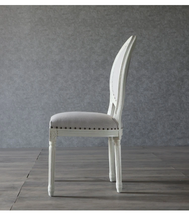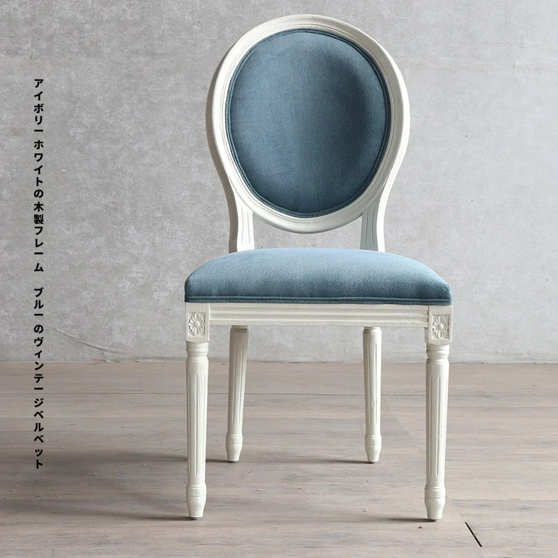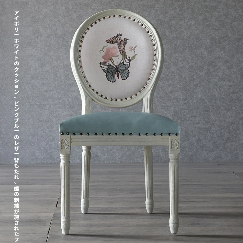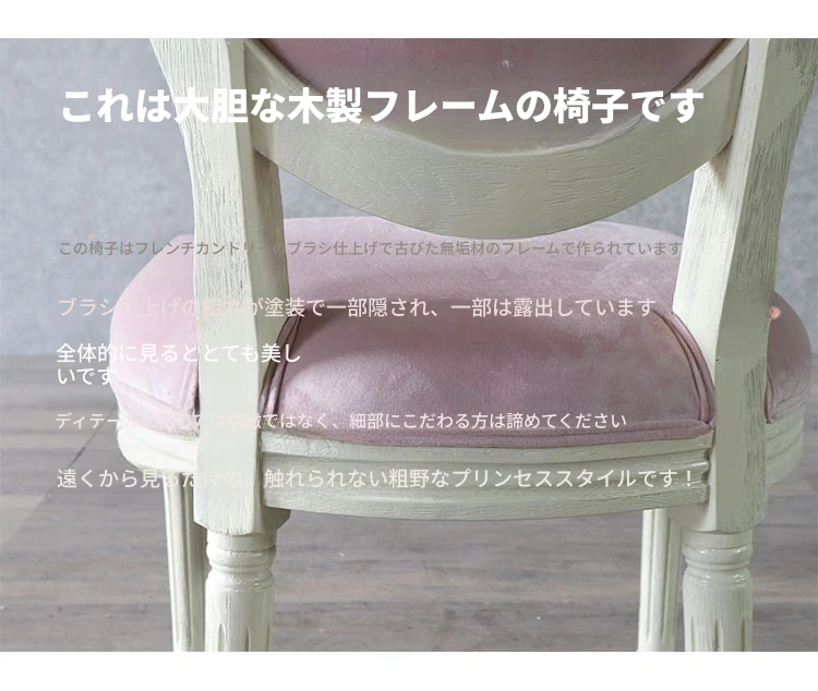 アメリカンプリンセス風スタディチェア|ネイルサロン・メイクアップ用椅子|欧風地中海スタイルのレトロアイボリーホワイト天然木製ダイニングチェア|優雅さと快適さを兼ね備えた一品!
