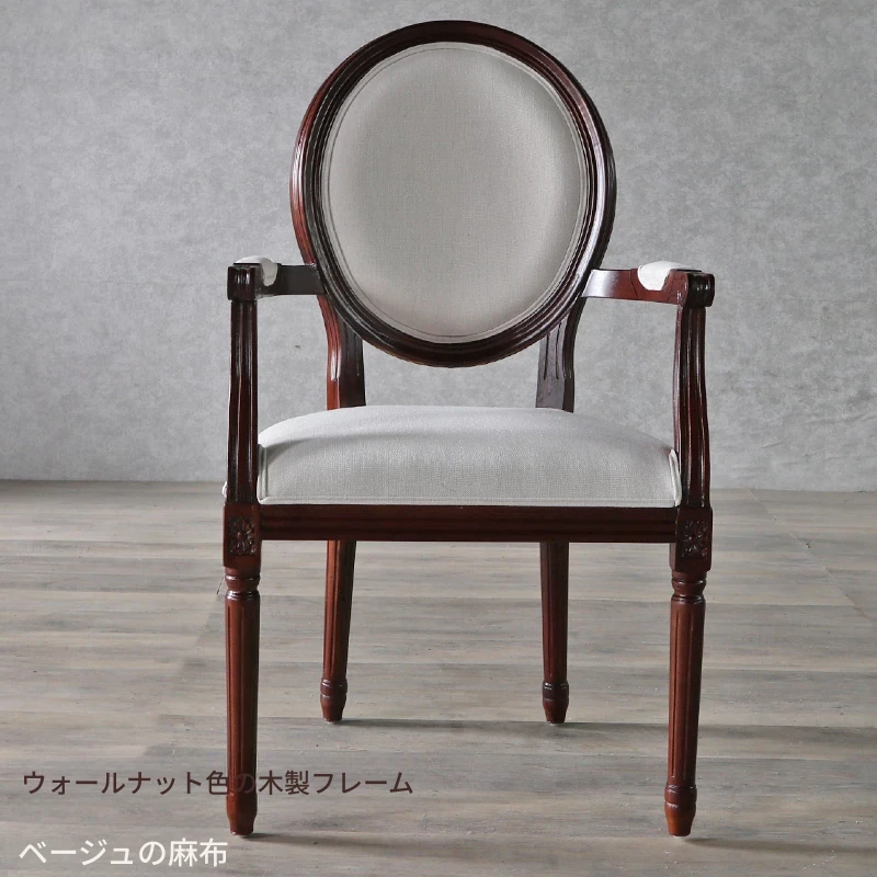 アーム付きミルクコーヒー粗麻ダークウォールナット