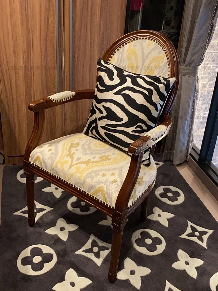 アメリカンウォールナットのダイニングチェア - 家庭用、実木製、アームレスト付き!新中式アートスタイルと欧風デザインが融合した、書斎やデスクに最適な美しい椅子。高級感あふれる一品で、快適な座り心地をお楽しみください!