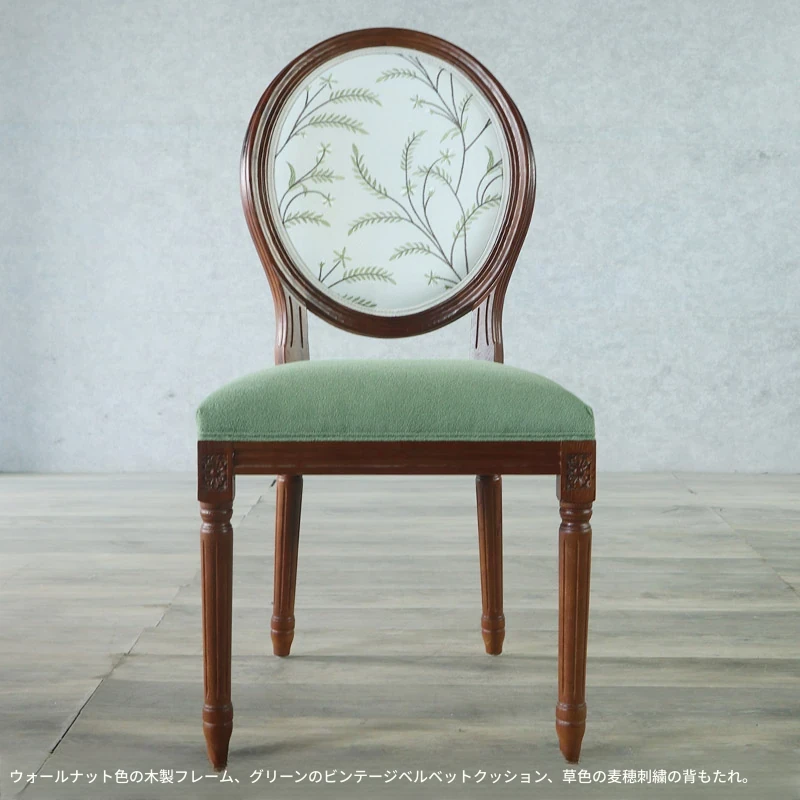 ウォールナット草緑色麦穂刺繍クッション緑色ヴィンテージベルベット