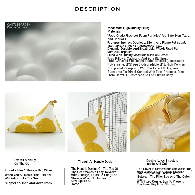 CASTLE GARDEN Removable Washable Soft Bean Bag Sofa - Cozy Volcano/Cotton Lounge Chair for Ultimate Relaxation