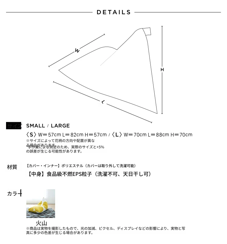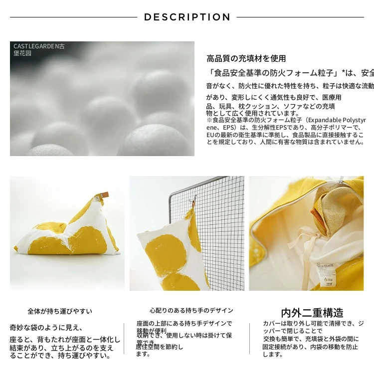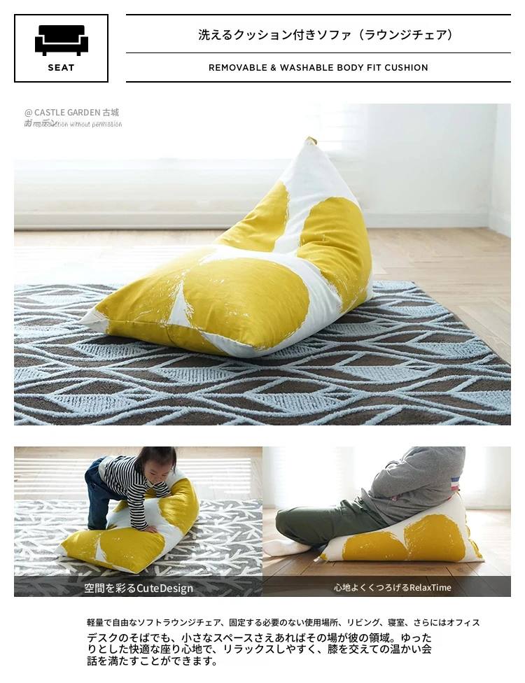 CASTLE GARDEN 洗えるソファ、リラックスできるビーズクッション!火山デザインとコットン素材の絶妙な組み合わせで、快適な座り心地を実現。おしゃれなインテリアとしても最適です!
