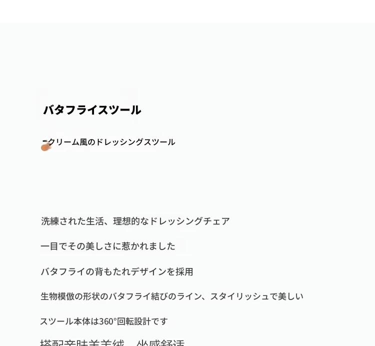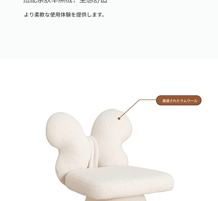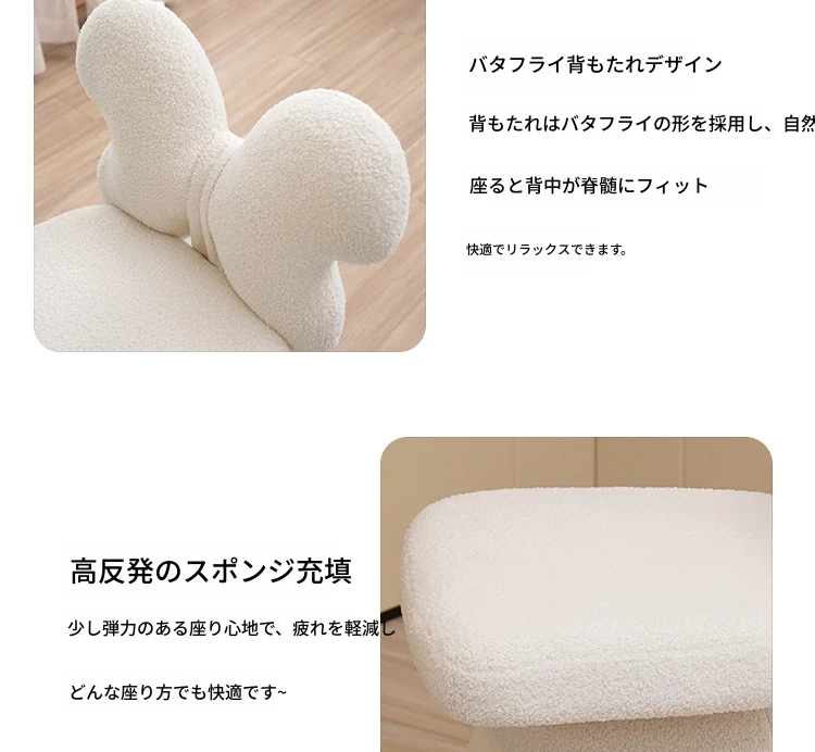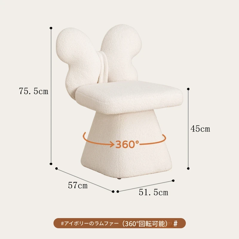 クリーミーな風合いのメイクアップスツール、背もたれ付きのバタフライチェア。女子のための寝室用ドレッサー、ラグジュアリーなラムファーで回転するビューティースツール。あなたの特別な空間を演出します!