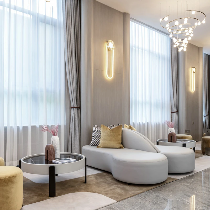 ホテルVIP接待エリアに最適!曲線デザインのソファブースセット - 売買契約室やモデルルームにぴったりな洗練された家具。おしゃれで快適な空間を演出します!
