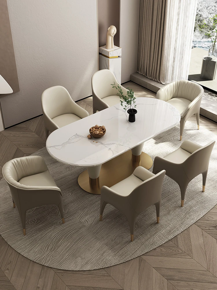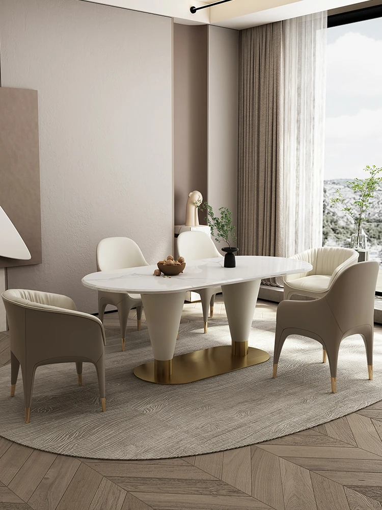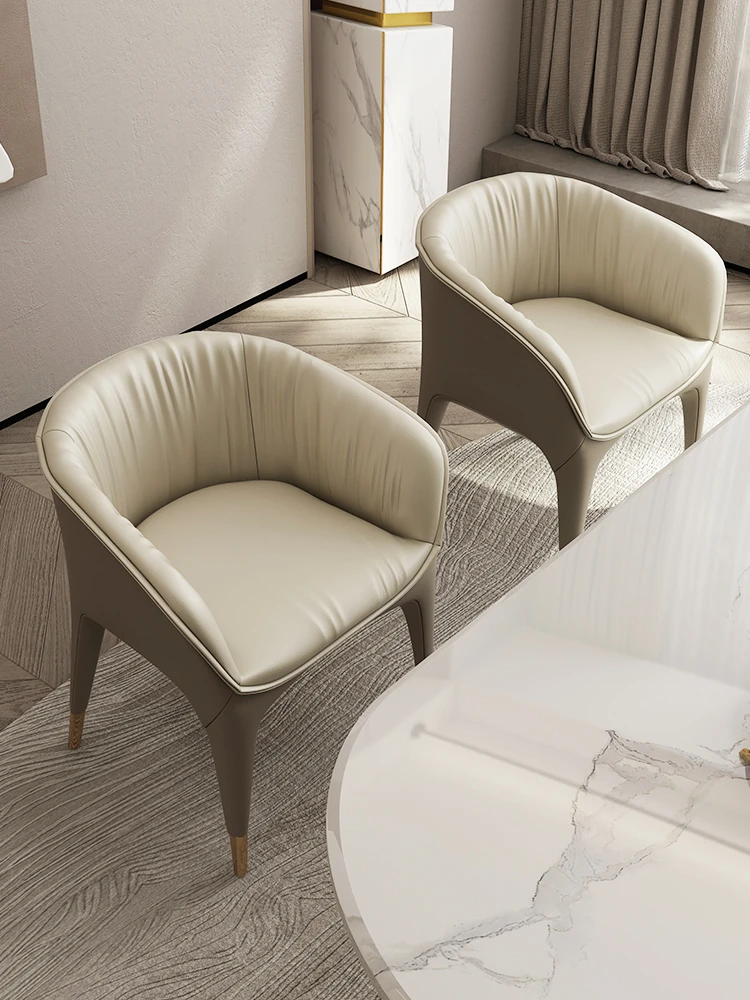 高級感あふれる軽奢ダイニングテーブル&チェアセット|イタリアンスタイルの背もたれ付き|化粧椅子や主役の椅子、麻雀用ハンドレスト付きの寝室用スツールにも最適!