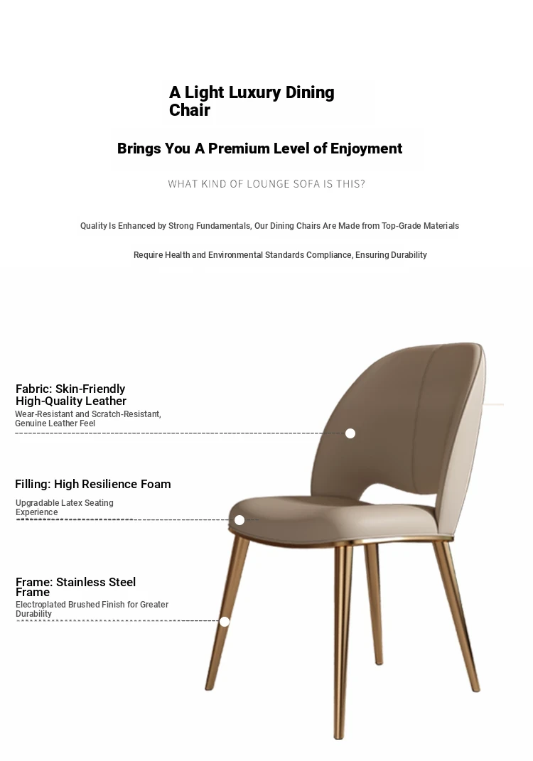 Elegant Modern Dining Chair - Lightweight Luxury Home Chair for Casual Reading, Makeup, and Dining Rooms. Designer Gold-Plated Accent Chair, Perfect for Trendy Spaces!