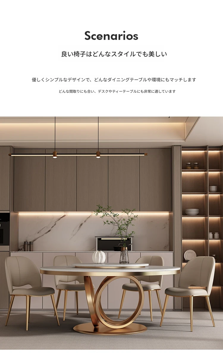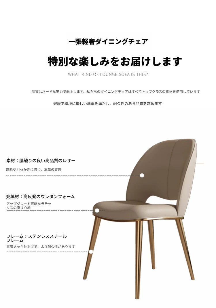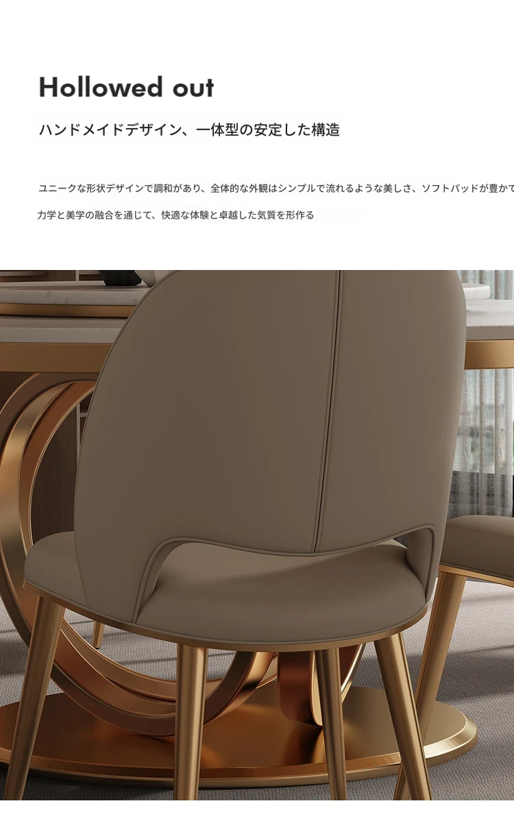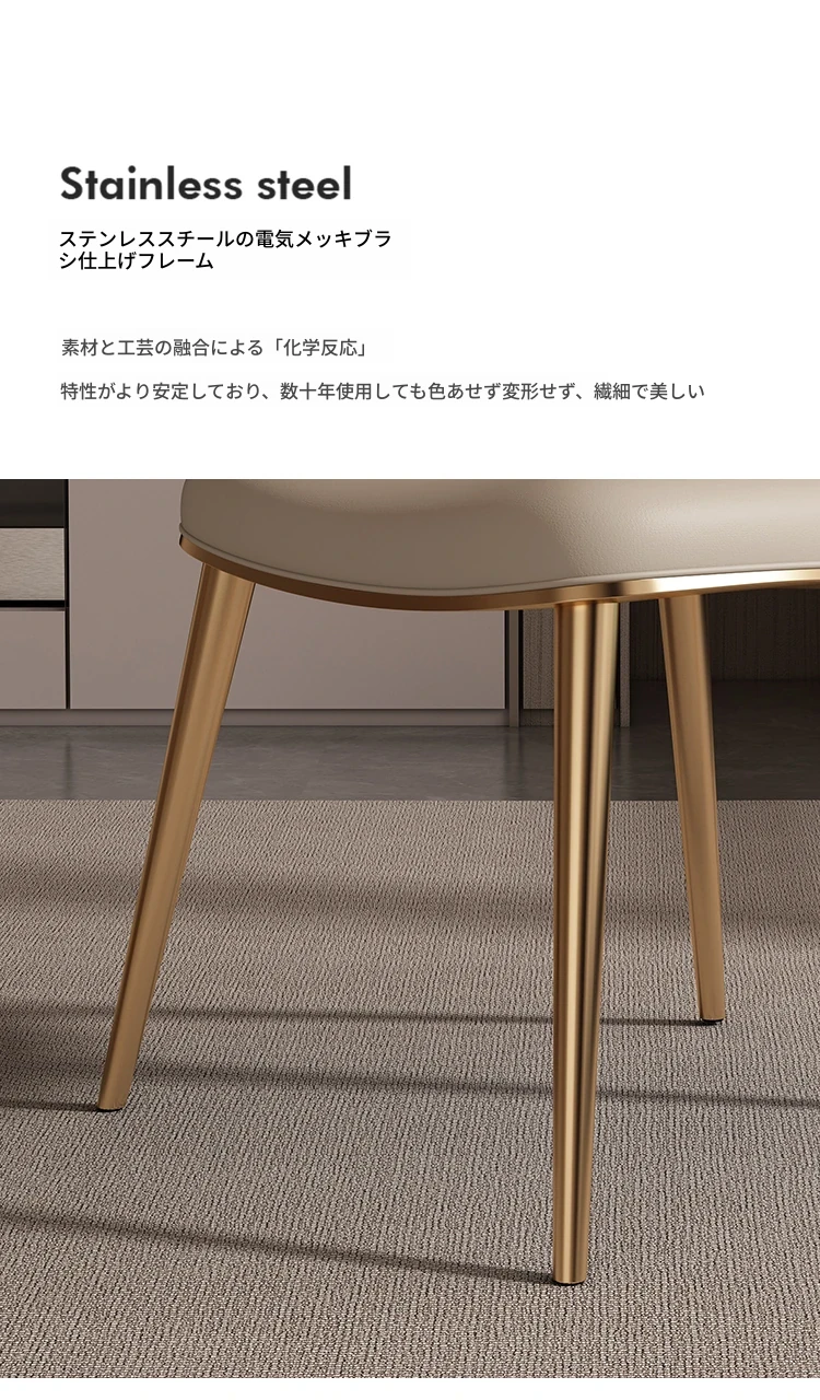 軽やかで洗練されたデザインのダイニングチェア - モダンなミニマリズムを追求したリビングや書斎に最適!ゴールドメッキ仕上げの魅力的な椅子は、あなたのインテリアを格上げし、特別なひとときを演出します。