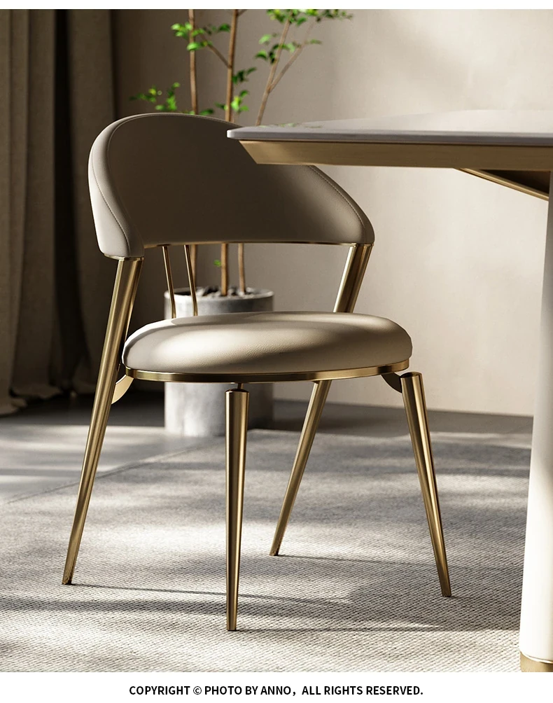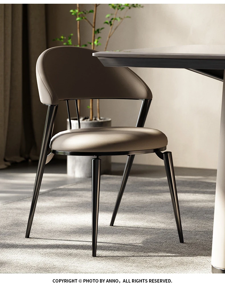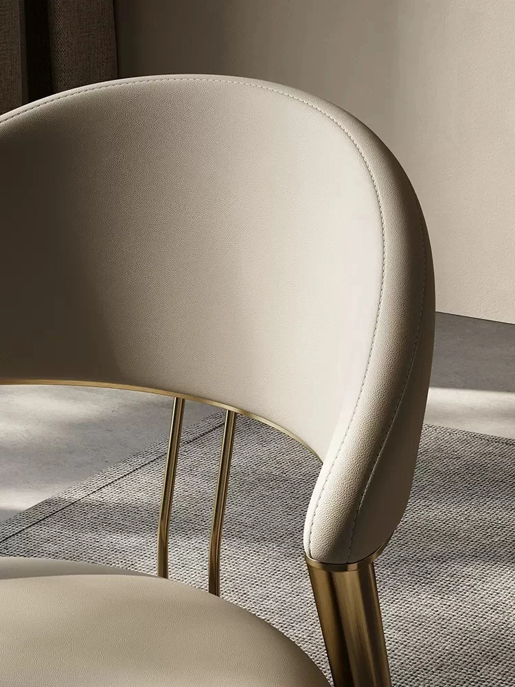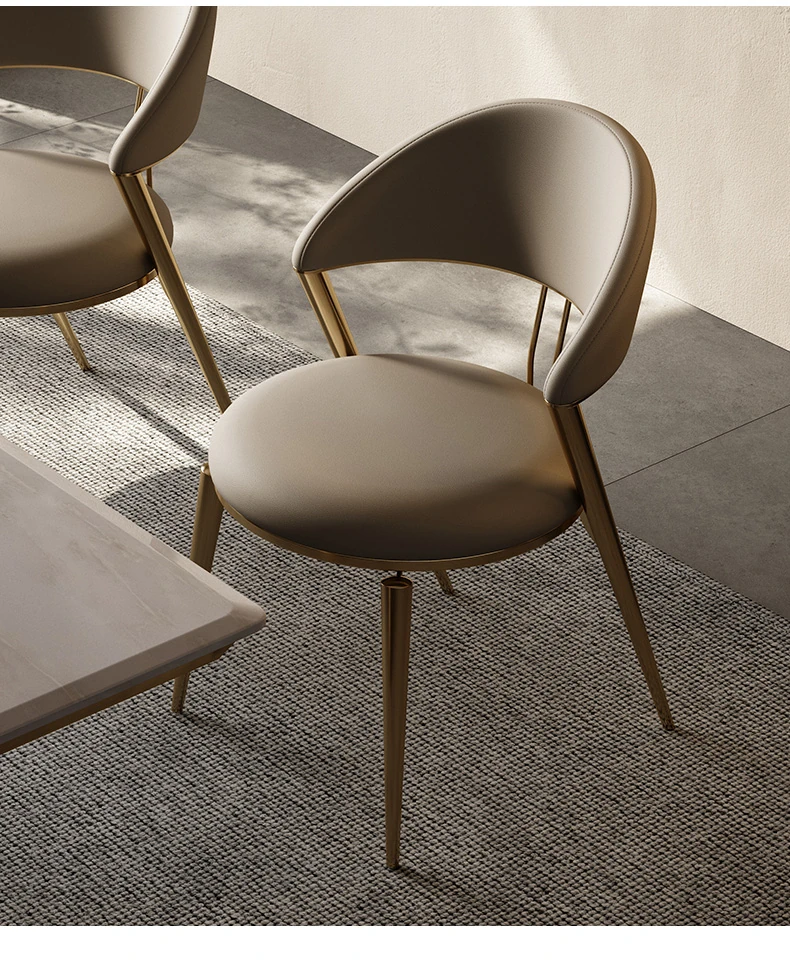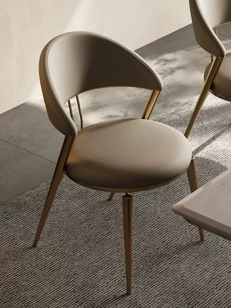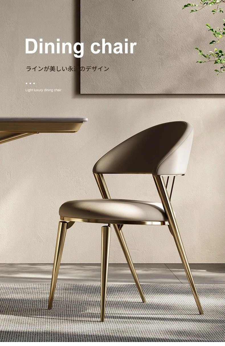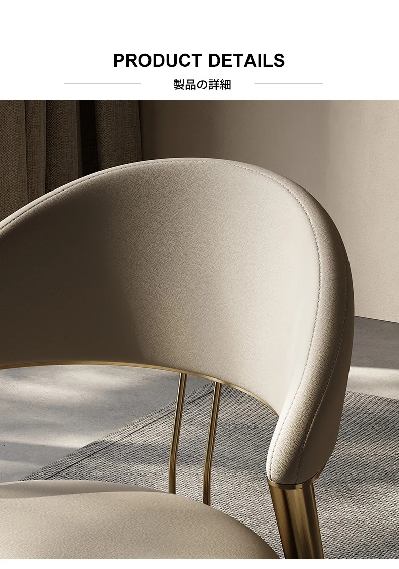 高級感あふれる軽奢ダイニングチェア|シンプルでモダンなデザイン|ステンレス脚と快適な背もたれ|高端別荘にもぴったりなラウンドチェアで、上質な食卓を演出!