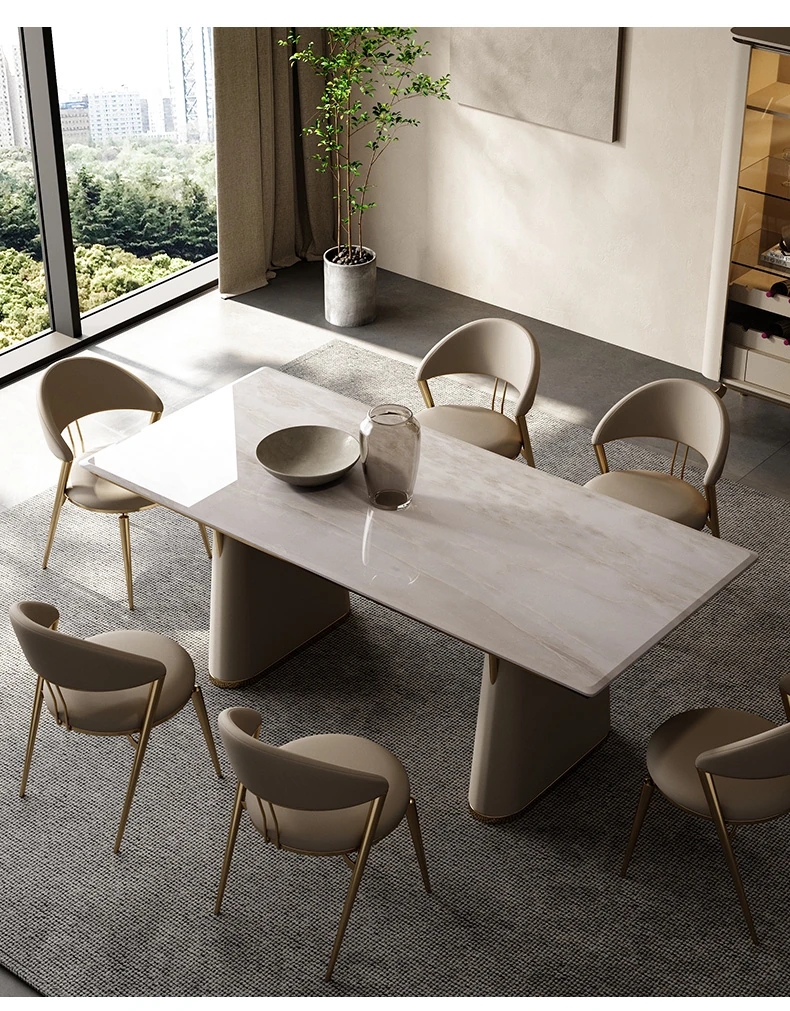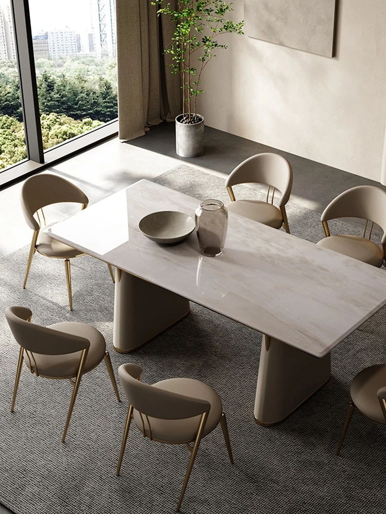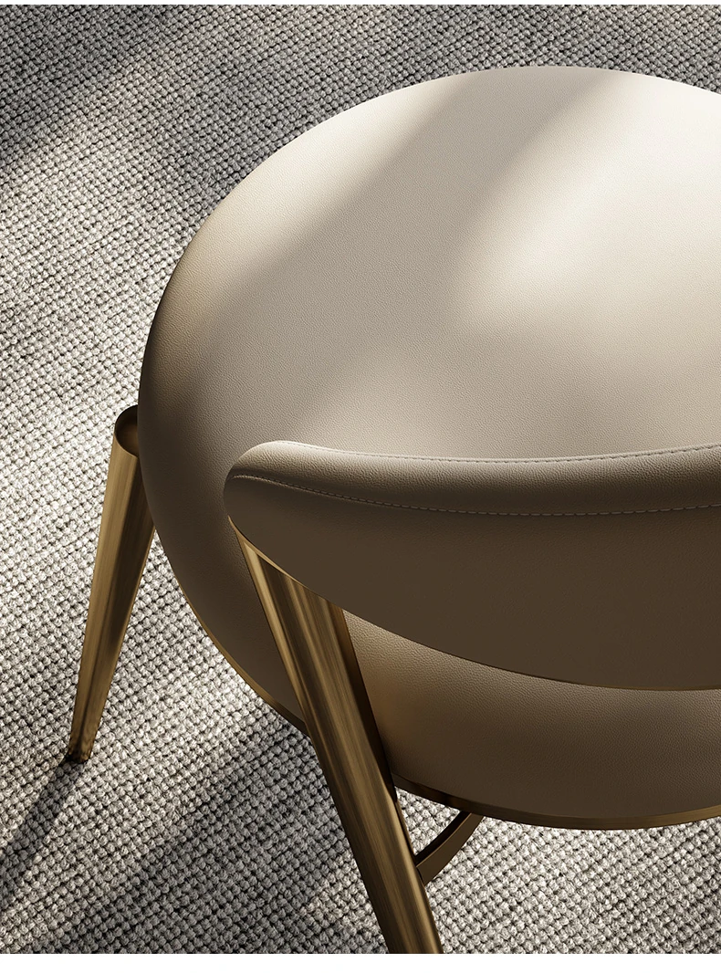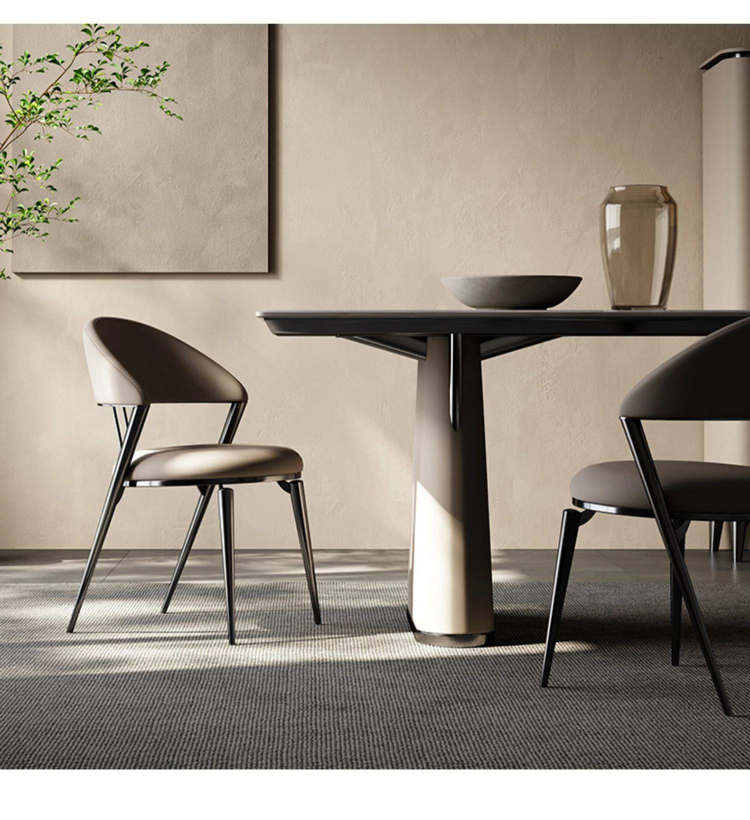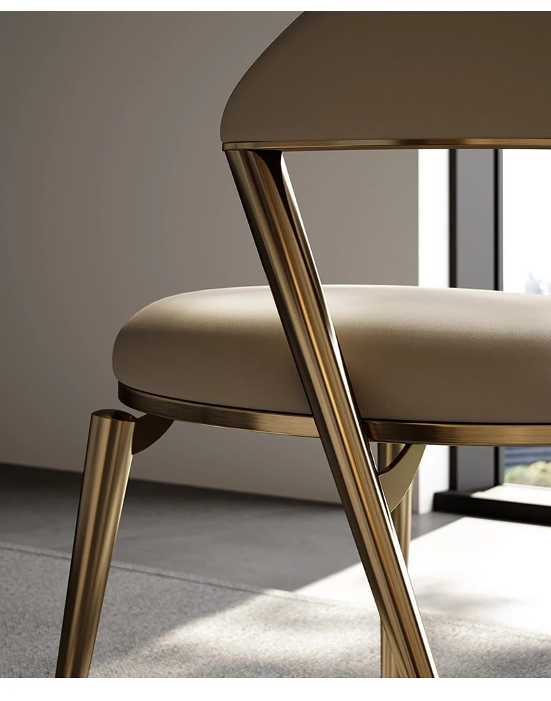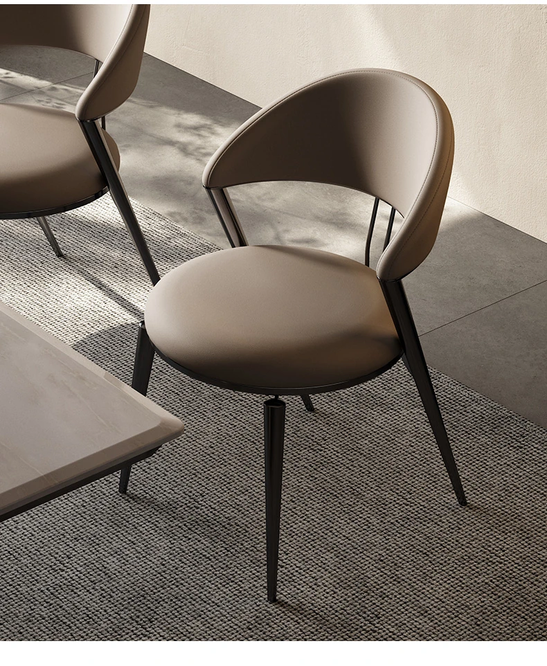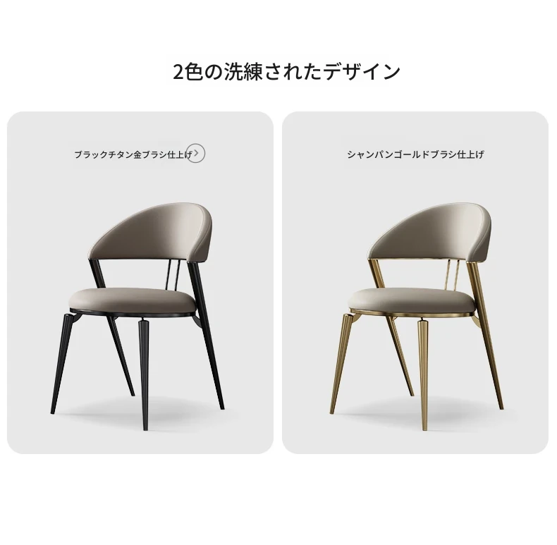 高級感あふれる軽奢ダイニングチェア|シンプルでモダンなデザイン|ステンレス脚と快適な背もたれ|高端別荘にもぴったりなラウンドチェアで、上質な食卓を演出!