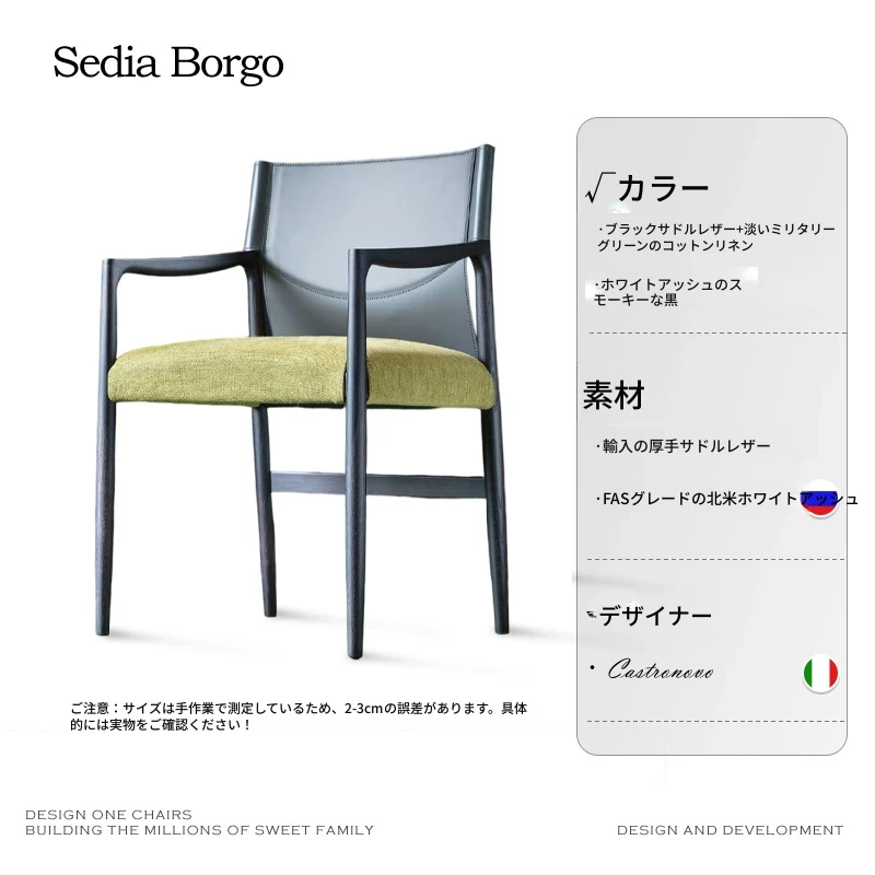 アームレストなし【カスタム版】ホワイトアッシュナチュラル+ブラックサドルレザー+オリーブグリーンナッパレザー