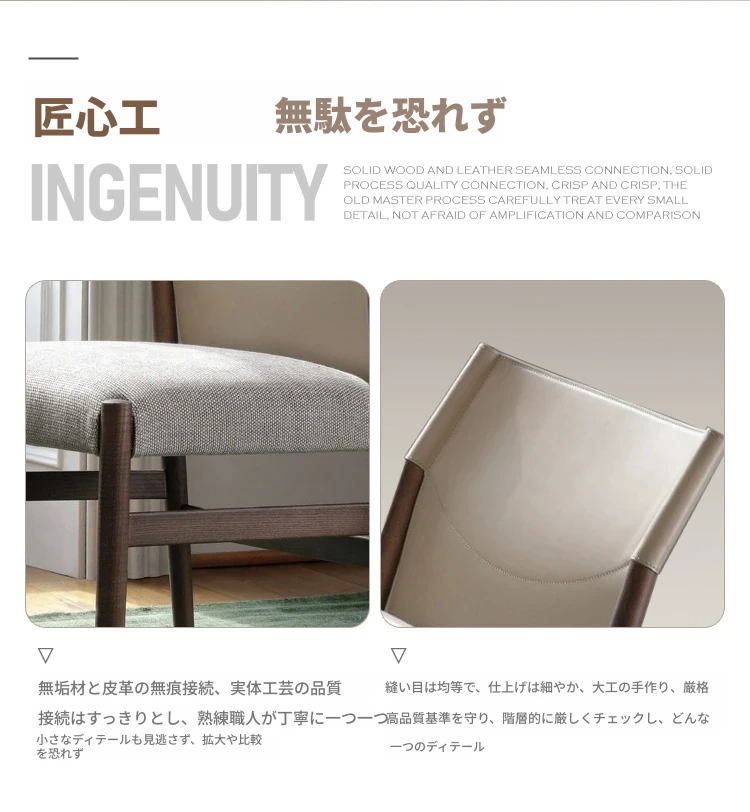 アームレストなし【カスタム版】ホワイトアッシュブラック+ブラックサドルレザー+グレーコットンリネン