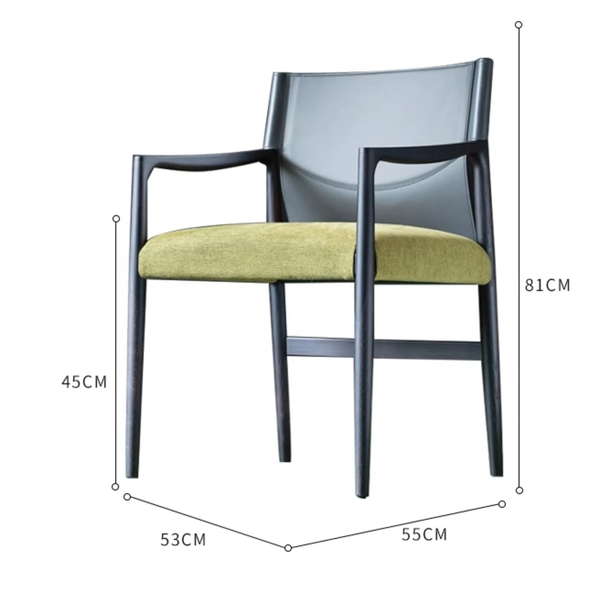 アームレストなし【カスタム版】ホワイトアッシュ煙色+ブラックサドルレザー+マスタードグリーンベルベット