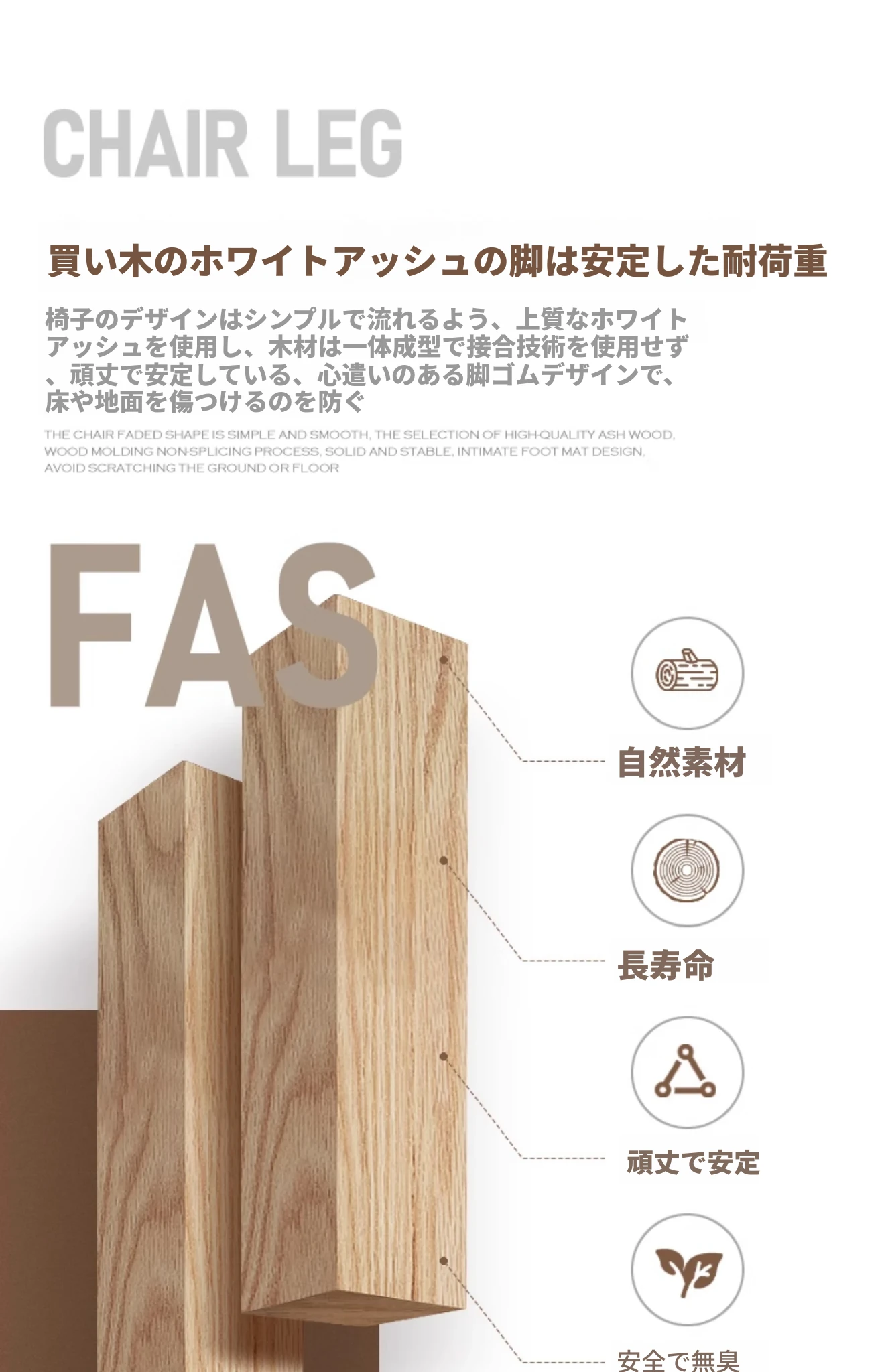 アームレストなし【カスタム版】ホワイトアッシュ煙色+ベージュサドルレザー+グレーコットンリネン