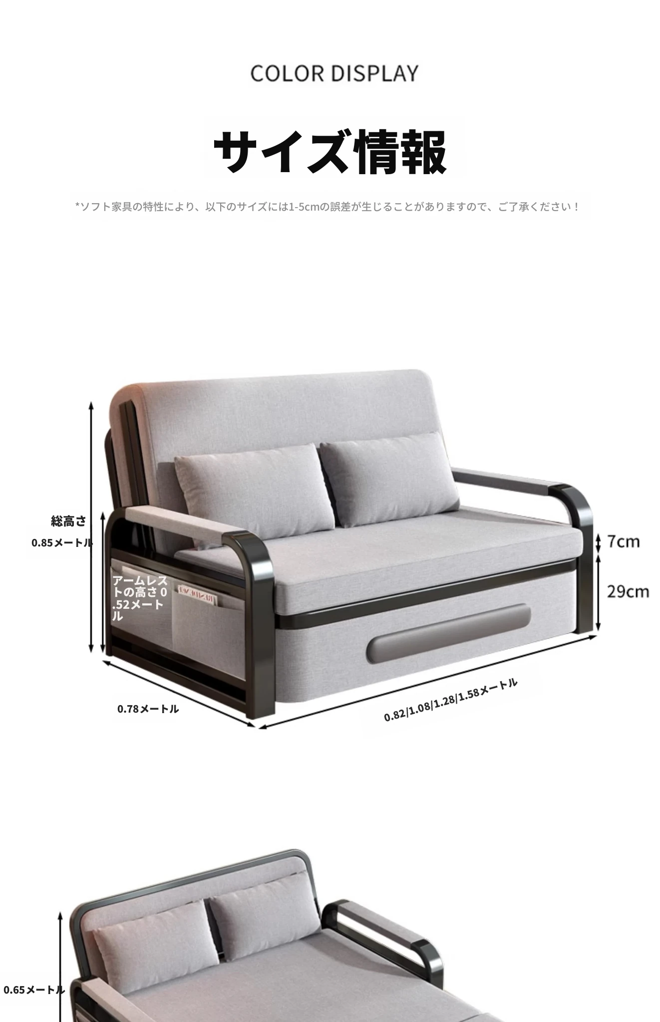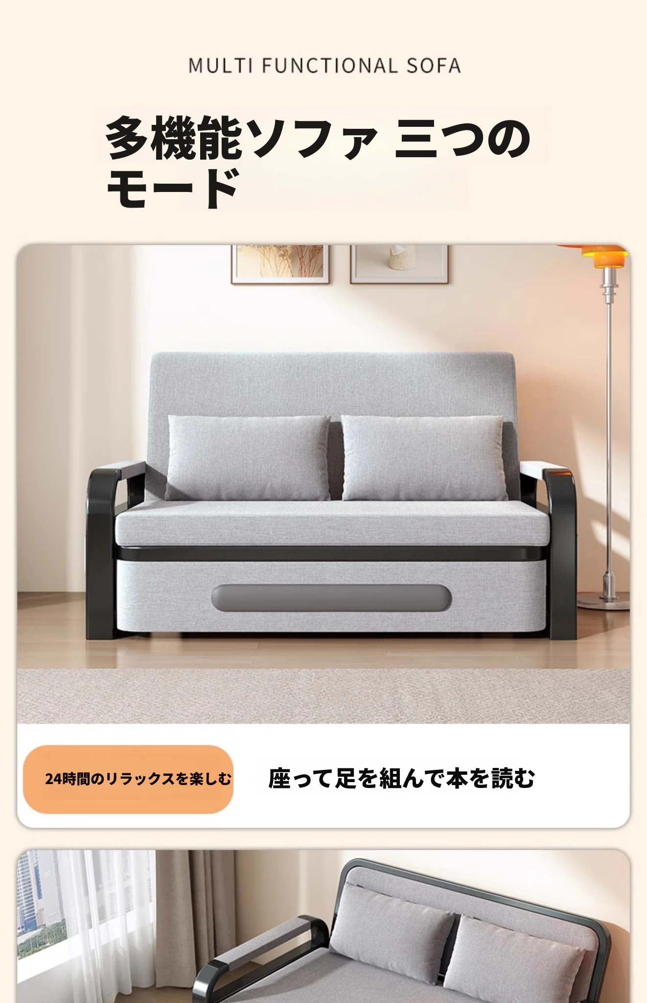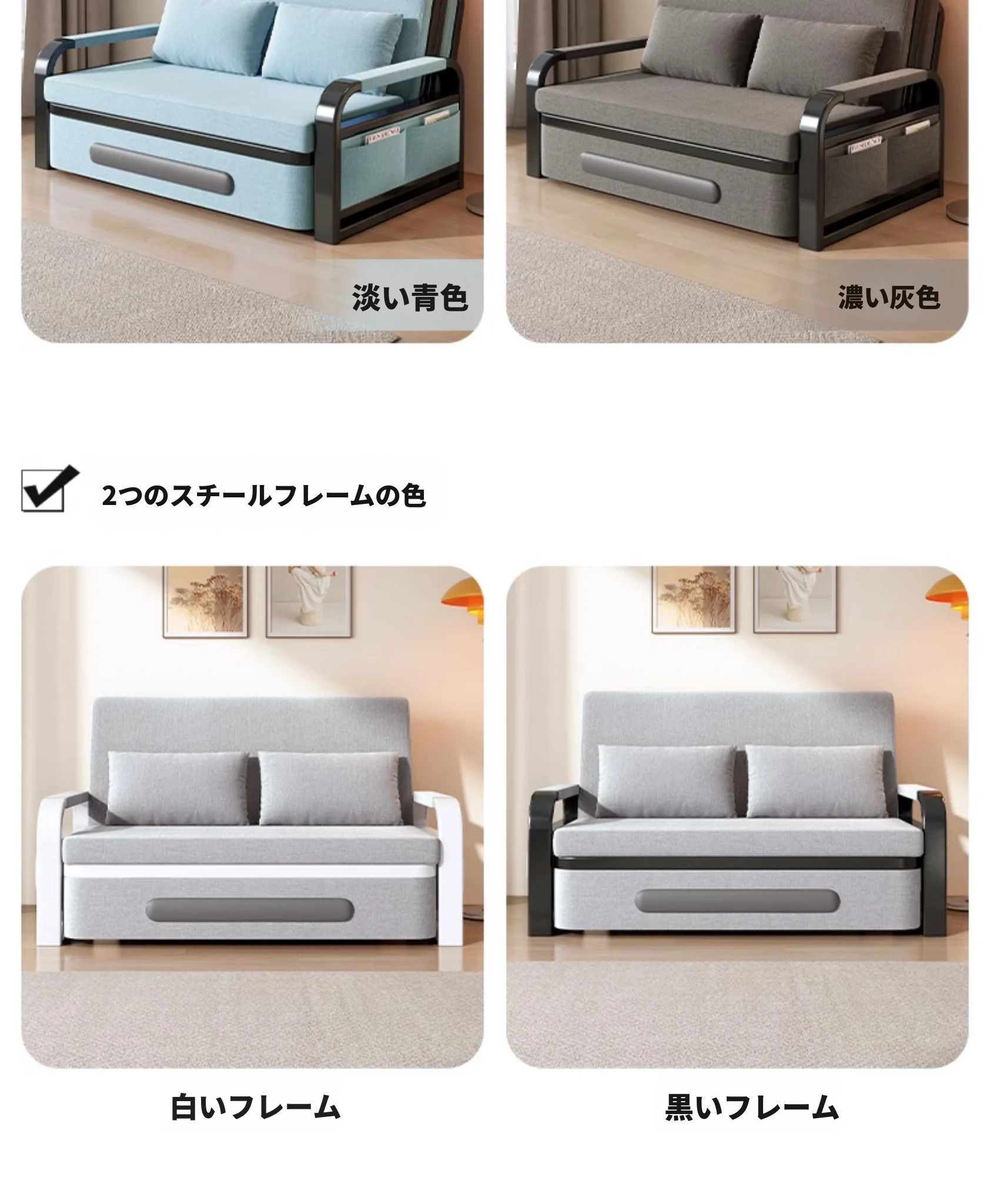 ブラックフレームグレーソファベッド-11