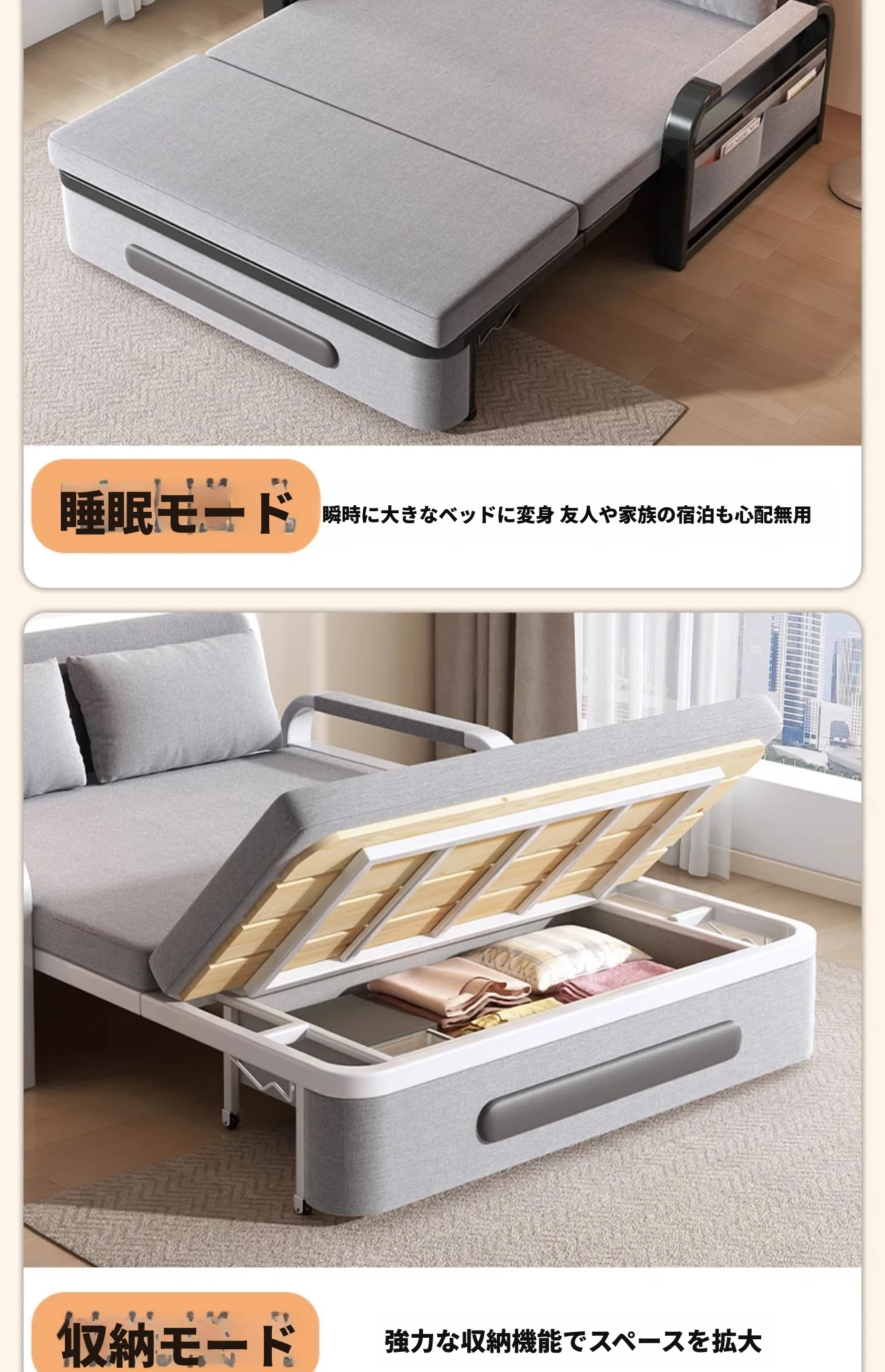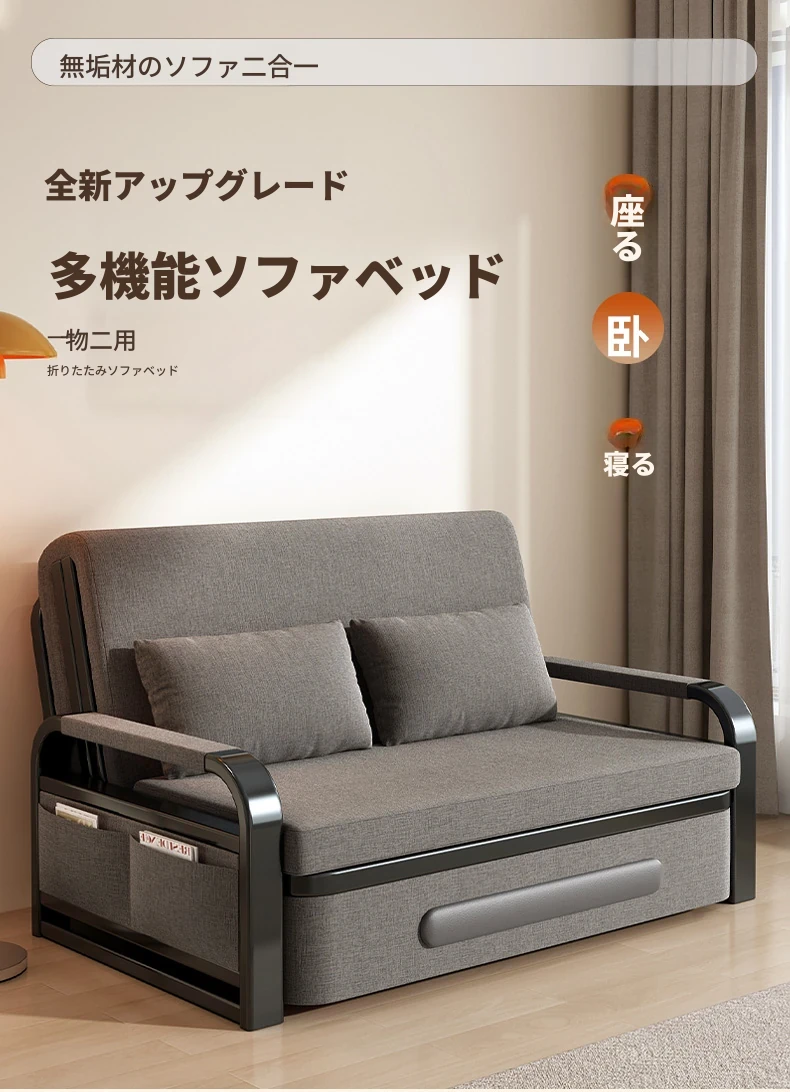 【香港送料無料】洞窝粤順の多機能折りたたみソファベッド!おしゃれな布製で、簡単に変形可能。リビングにぴったりのシンプルデザインで、快適な居心地を提供します。あなたの空間をスタイリッシュに演出!